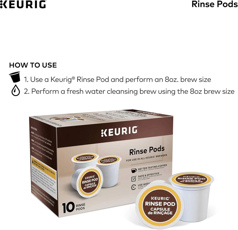 Better tasting beverages: Reduces flavor carry over between brews Quickest way to clean your k cup pod holder: Rinse away residue and oils that can build up in your coffee maker Easy to use: Use just like you would a regular k cup pod Safe and effective: Gentle and odorless formula Use weekly: Or any time after brewing a flavored coffee, cocoa, or tea Compatible with all keurig coffee makers (not compatible with the vue system) Included in the box: 10 keurig rinse pods Made in the USA Packaging may vary