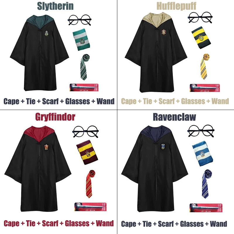 Key Fectures: Exquisite Workmanship 100% Brand New and High Quality Kids Harry Potter Gryffindor Ravenclaw Slytherin Robe Cloak Scarf Wand Costume Theme: Harry Potter Character: Gryffindor, Ravenclaw, Slytherin, Hufflepuff Material: Polyester Size: 115, 125, 135, 145, 155 Recommended Age: 3-15 Years Old Recommended Height: 100-150 cm Gender: Unisex, Boys, Girls Department: Kids, Children Item Design: TV, Movie & Video Games; Cartoon & TV Character Great for: Christmas, Halloween, Party, Carnival, Holiday, Book Week, Daily Wear... Package Includes: Cape Only Cape + Tie Cape+Tie+Scarf Cape+Tie+Scarf+Glasses+Wand Cape+Tie+Scarf+Glasses+Wand+Hat Notes: 1. There might be slightly difference in color, because of the computer monitor settings. 2. With the difference in the measurement method, please allow 1-3 cm in the size deviation. 3. Do not hesitate to Contact us before you likely to post A Negative feedback, we look forward to maintain excess standard and drive A better customer service and satisfaction for you.