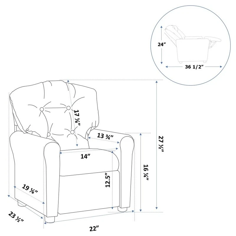 29 Inch Mountain Bike 18 Speed Adult Front Suspension Off Road Durable Frame US 217.73 USD Free shipping 26 Inch 7 Speed Cruiser Bike Women Lightweight Hybrid Bicycle Easy Assembly Blue 259.18 USD Free shipping 3 In 1 Adjustable Dumbbell Kettlebell Barbell Weight Set 46 lb Compact Home Gym 155.48 USD Free shipping 55lb Olympic Weight Set Barbell Dumbbell Adjustable Curl Bar Plates Gym Fitness 90.7 USD Free shipping Upright Row-N-Ride Squat Assist Exerciser W/ Bluetooth App Resistance Bands New 142.54 USD Free shipping Adjustable 3-in-1 Dumbbell Kettlebell Barbell Weight Set Compact Home Gym 46 lb 155.48 USD Free shipping Adjustable Dumbbell Set 66lb Home Gym Weight Training Ergonomic Grip Non-Slip US 88.13 USD Free shipping Non-Slip Rubber Hex Dumbbell 60 lbs Single Weight Training Fitness Equipment New 84.87 USD Free shipping Non-Slip Rubber Hex Dumbbell 70 lbs Strength Training Home Gym Equipment Black 93.29 USD Free shipping Adjustable 3-in-1 Dumbbell Weight Set 7-52.5lbs Anti-Slip Compact Home Gym New 176.8 USD Free shipping 66 LB Adjustable Dumbbell Set Weight Training Home Gym Equipment Non Slip Gym 77.61 USD Free shipping Adjustable 33lb Dumbbell Weight Set Home Gym Spinlock Collars Non-Slip Handles 55.71 USD Free shipping Introduce your little ones to the perfect blend of comfort and style with Traditional Kids Recliner. Designed specifically for toddlers aged 1-5 years, this recliner for kids provides a cozy seating option perfect for story time, tv watching, or simply relaxing. Upholstered in high-quality polyester linen, this recliner for kids not only feels soft to the touch but also adds a touch of sophistication to any room’s décor. The recliner features a sturdy frame and comfortable padding, ensuring your child can enjoy their personal seating space safely and comfortably. Our button tufting is made with circle stitches instead of actual buttons to eliminate the choking hazard which can occur when buttons fall off. Plush padding and a supportive backrest provide maximum comfort for your child. Whether it’s for the living room, playroom, or bedroom, Traditional Kids Recliner blends seamlessly with any décor while providing your child with their very own special spot to unwind. Its perfect size ensures that young children can sit comfortably and safely. This recliner for kids provides a cozy spot for relaxation and play. It not only offers maximum comfort but also adds a touch of elegance to any room. Easy to Clean: The PU faux leather material of this kids recliner is easy to wipe clean. It's perfect for parents who want a low-maintenance option for their children. The recliner for kids stays looking new with minimal effort. Safe and Sturdy: Built with an engineered wood frame, this armchair recliner for kids ensures safety and longevity. Button tufting is made with circle stitches instead of actual buttons to eliminate the choking hazard which can occur when buttons fall off. Parents can feel confident that this kid's armchair recliner is safe. Multi-Use Recliner: Perfect for reading, watching TV, or just relaxing, this kids armchair recliner is versatile and functional. The reclining chair for kids is an all-in-one solution for comfort and activity. Compact and Lightweight: The compact design of this kids recliner makes it easy to move around. Its lightweight construction ensures that it can be relocated with ease. This recliner for kids is perfect for families who need flexibility in their furniture arrangement. This kids armchair recliner adds a stylish touch to any space. Great Gift Idea: This kids recliner makes a wonderful gift for birthdays, holidays, or any special occasion. It’s perfect for toddlers aged 1-5 years. Give the gift of comfort and style with this recliner for kids. You may also like Classic Video Rocker Gaming Chair for Kids Teens Seats Faux Leather Mesh Black 57.2 USD Free shipping Classic Video Rocker Gaming Chair Ergonomic Floor Chair Kid Teens Portable Black 54.17 USD 57.02 USD Free shipping 5% off