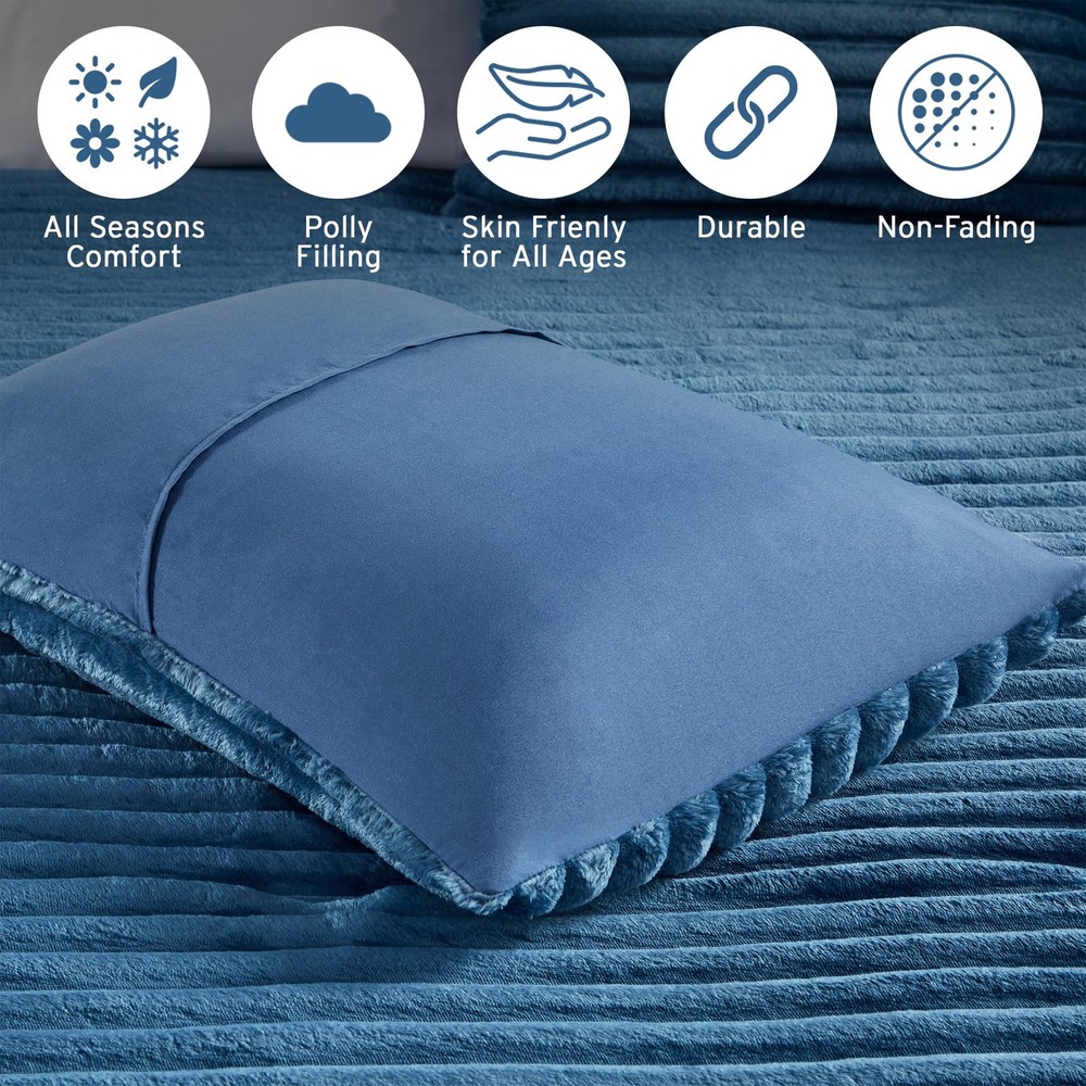 Luxurious Plush Velvet Comforter - Wrap yourself in luxurious softness with our plush corded bedding, cocooned in the unmatched comfort of a soft velvety touch. Soothing and comforting, it's like floating away on clouds, delving into the depths of dream All Seasons Comfort - Experience cloudlike comfort. Featuring all-seasons skin-friendly filling, its microfiber reverse provides a soft, and lofty feel & the ribbed texture enhanced breathability, providing a warm embrace for a perfect snuggle year-round Lightweight & Fluffy Comforter - This plush and fluffy bed set features jump tack quilting ensuring even fill distribution, preventing shifting & clumping for consistent warm and comfort. Oeko-Tex certified for excellent quality standards Comforter set includes King size comforter set 104"W x 90"L 2 King Shams:20"W x 36"L (2) Easy Care - Our plush microfiber bedding is durable, resists wrinkle and non-fading. For you convenient it's machine washable. Do not bleach. Tumble dry low. Remove promptly. Use fabric steamer for wrinkles