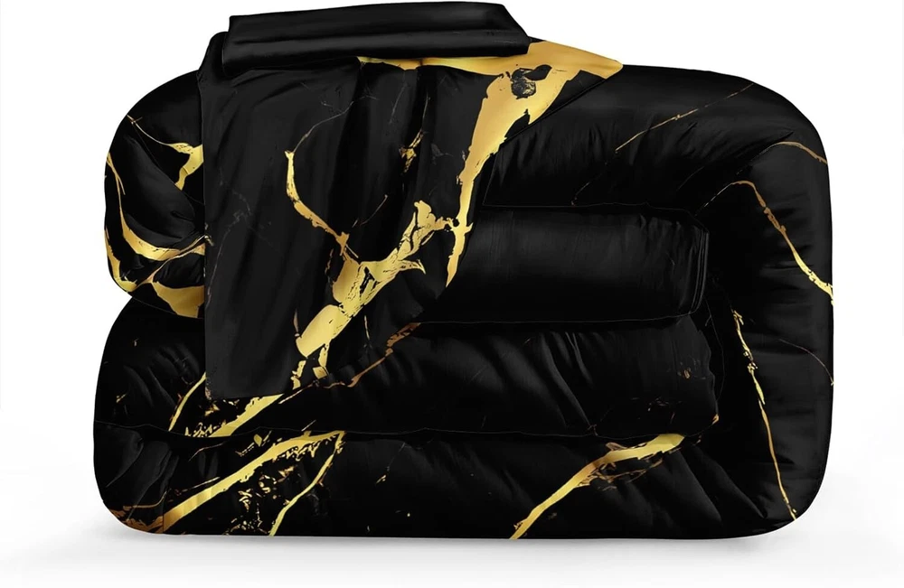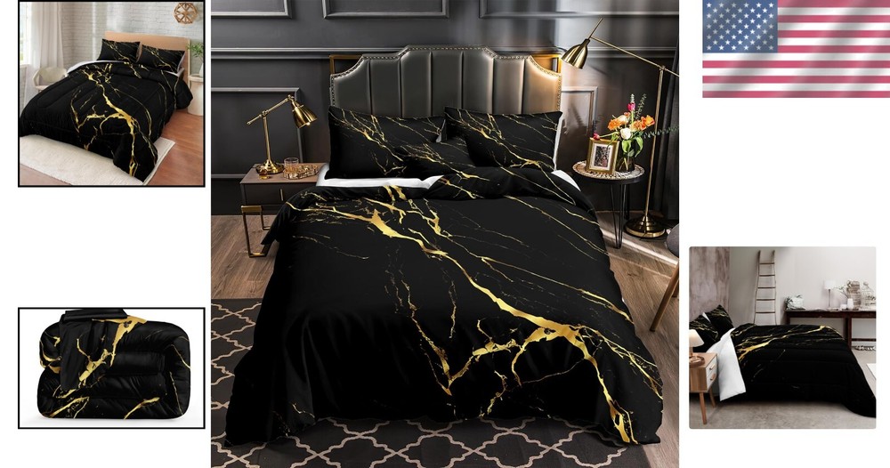 King Size Black Gold Marble Comforter Set - Soft Microfiber Luxury Bedding ‹ › ‹ › ‹ › ‹ › ‹ › ‹ › ‹ › ‹ › King Size Black Gold Marble Comforter Set Soft Microfiber Luxury Bedding What You’ll Get: 1 King Comforter: 104" x 90" 2 Pillowcases: 20" x 36" 1 Cushion Cover: 18" x 18" Features: Luxurious 200gsm whole piece 100% washed microfiber filling. Unmatched softness that provides warmth without the weight. Fashionable stitching design to prevent clumping and shifting of filling. Perfect for year-round comfort, suitable for all seasons. Benefits: Experience the elegance of black gold marble design that enhances any bedroom decor. Exceptional softness promotes luxurious comfort for restful sleep. Easy care and maintenance ensure long-lasting use. Care Instructions: For your convenience, this comforter set is machine washable. We recommend a gentle cycle in cold water, while avoiding bleach or prolonged soaking to protect its vibrant colors and luxurious feel. Tips: Upon unboxing, allow the comforter to bask in sunlight and gently pat it out or place it in the dryer on low heat to revive its fluffiness. Transform Your Space: Your search for the perfect blend of elegance and comfort ends here. Choose the King Size Black Gold Marble Comforter Set to enhance your bedroom aesthetic while enjoying unparalleled softness and warmth. Elevate your sanctuary with refined style and indulge in restful sleep. Order now to embrace luxury every night! Shipping Free & Fast Shipping - We offer free shipping to most of the USA with a normal delivery time of 3-7 days. However, due to the current situation, additional delivery time (up to 3 weeks) may be required for some items. Alternative Carriers - We may use alternative carriers (e.g. USPS, FedEx, UPS, etc.) to ensure your package arrives safely and on time. Due to the use of multiple carriers, we are unable to provide a tracking number automatically. Handling Time - Orders are processed and shipped within 1-2 business days of receiving cleared payment. Shipping Restrictions - Shipping to Alaska, Hawaii, Puerto Rico, Guam, and other US territories may incur shipping charges or delivery restrictions. Please contact us before ordering, or your order can be refunded/cancelled. State Restrictions - There may be restrictions based on your state of purchase. For example, certain items may not be shipped to California due to state regulations. Contact for Tracking Updates - If you require tracking updates or have any concerns about the delivery of your order, please feel free to contact us, and we will be happy to assist you. Return 30-Day Hassle-Free Returns - We want you to be completely satisfied with your purchase. If you are not, you can return the item within 30 days of receiving it for a full refund or exchange. Easy Return Process - To start a return, simply contact us and we will provide you with a prepaid return shipping label and detailed instructions. Restocking Fee - There are no restocking fees for returns. However, the buyer is responsible for return shipping costs if the return is not due to a seller's error. Refund Processing Time - Refunds will be processed within 5 business days of receiving the returned item in its original condition. Payment We accept all major credit cards, PayPal, and Apple Pay for your convenience. Your payment information is secure and encrypted to ensure a safe and seamless transaction. Please complete your payment within 3 days of purchase to avoid any delays in shipping. Feedback Your feedback is extremely important to us. We strive to provide the best products and customer service possible. If you are satisfied with your purchase, please take a moment to leave us a positive review. If you have any concerns or issues with your order, please contact us before leaving negative feedback. We are committed to resolving any problems and ensuring your satisfaction. Contact Us If you have any questions or concerns, please feel free to reach out to our customer support team. You can contact us through the eBay messaging system. We are available Monday to Friday, 9:00 am to 5:00 pm EST, and we will do our best to respond to your inquiry within 24 hours. Buy it now and enjoy a pleasant shopping experience! UPC: Not Set Model: Not Set Set Includes: Comforter,Pillowcase,Cushion Cover,Pillowcases Material: Microfiber Features: Soft,Cozy,Stylish Stitching Theme: Luxury Character: Not Set Care Instructions: Do Not Bleach,Machine Wash,Do Not Soak for Long Time Department: All Ages Room: Bedroom Labels & Certifications: Not Set Size: King Type: Comforter Set Brand: Unbranded Color: Black Fill Material: Microfiber Pattern: Marble Item Width: Not Set Item Length: Not Set MPN: Not Set Number of Items in Set: 4 Style: Modern Character Family: Not Set Insulation: All Seasons Season: All Country/Region of Manufacture: Not Set Closure Type: No Closure Drop Length: Not Set Thread Count: 200 or Less GSM (Grams per Square Meter): 200 Product Line: Not Set Personalize: Not Set