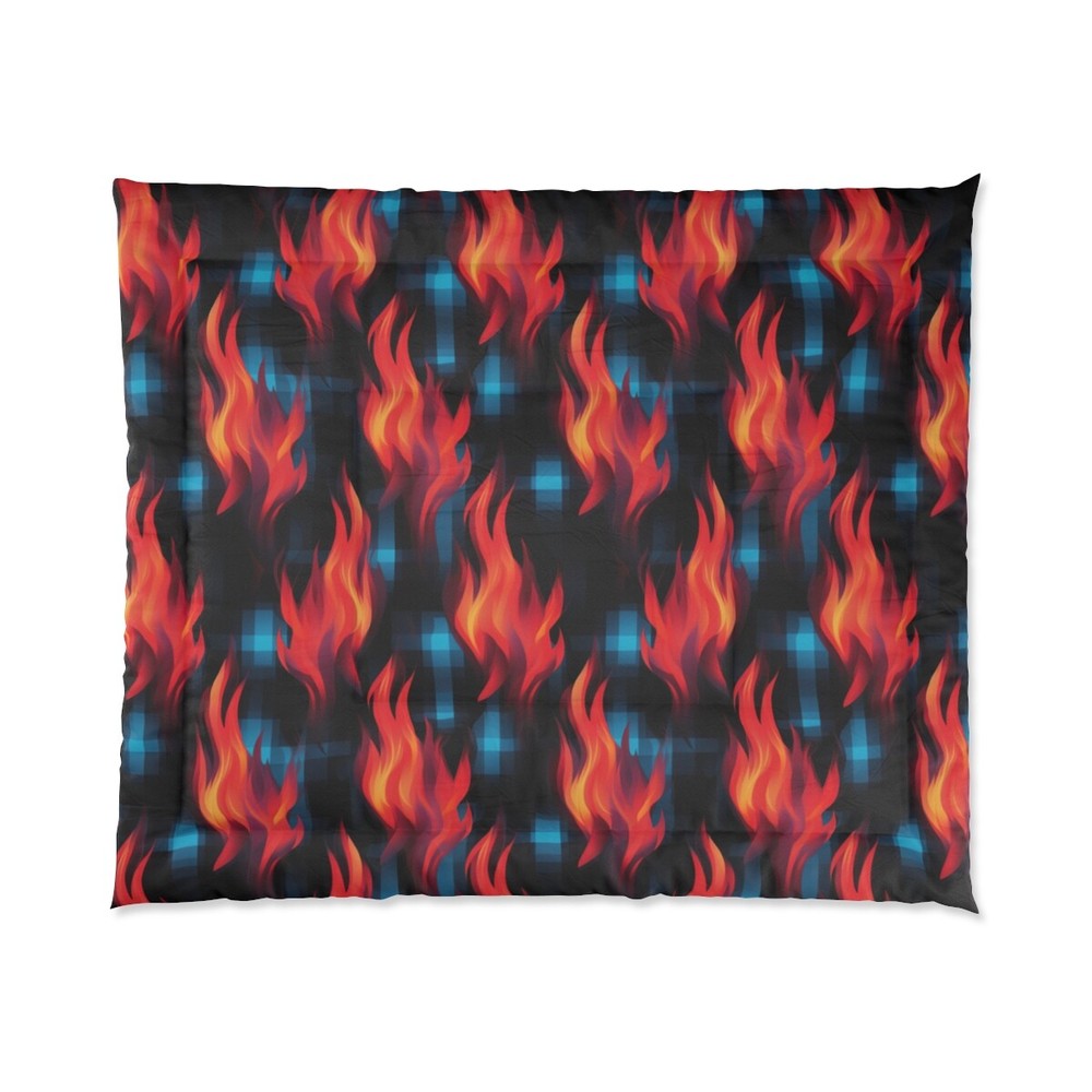 Vibrant King Size Plaid Flames Comforter for Biker & Modern Home Decor