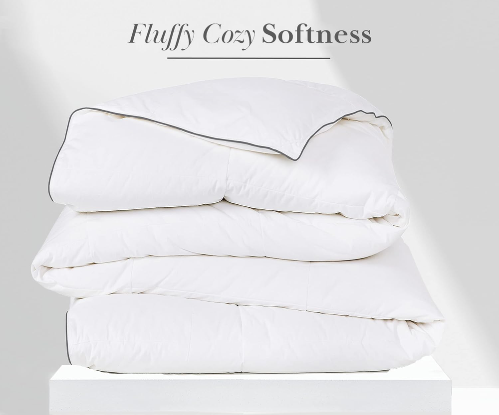 Store New Arrivals Add to Favorite View Feedback Contact King Size Comforter Duvet Insert - Cozy Luxury down Alternative, Quilted Extra Fluffy, Soft, and Cooling, Machine Washable with Corner Tabs - White Description Item model number 840307180315 Style Down Alternative Number of Items 1 Pattern Solid Country of Origin China Blanket Form Comforter Theme Plain Unit Count 1.0 Count Product Dimensions 106"L x 90"W Material Rayon Age Range (Description) Adult Seasons All, Winter, Summer, Spring Fabric Type 100% Rayon Item Weight 9.33 pounds Fill Material Down-alternative Special Feature All-Season, Machine Wash & Dry, Breathable, Quilted, Corner Tabs, Soft, Fluffly Fabric Warmth Description Heavyweight Sport All season Color White Global Trade Identification Number 00840307180315 Recommended Uses For Product Home Included Components 1 Comforter Product Care Instructions Machine Wash Size King All-Season Luxury Comforter: Snuggle up in ultimate comfort with our king size comforter, crafted from soft cooling fabric and filled with high-quality, fluffy down-alternative for balanced, all-season warmth—not too light or heavy. Features corner hooks for secure duvet cover attachment. True King size 106 inch wide x 90 inch long. Easy to Use & Maintain - Our king size duvet insert is extra fluffy with corner hooks for attaching to duvet cover ties, ensuring it stays in place all night. Pairs perfectly with our luxury cotton duvet covers (sold separately). Machine washable and dryer friendly. Affordable Luxury Bedding - Indulge in the luxury of a real down comforter without breaking the bank. Our king down-alternative duvet insert looks and feels like real down, offering generous coverage that fits various mattress types. Perfect for families wanting luxury without maintenance or potential health issues. Expertly Crafted Quilting - Say goodbye to filling leaks, rips, and uneven fill with our expertly crafted comforter. High-quality stitching, box quilting, and all-around silver piping ensure superior durability and prevent fill shifting. Soft, cooling, and noiseless fabric for peaceful sleep. Trustworthy Sustainable Brand - We are the most-reviewed sustainable bedding brand on Amazon! Our products are certified as STANDARD 100 by OEKO-TEX to ensure no harmful substances get in your bed. We use non-plastic boxes for packaging and are committed to mindful and ethical processes. We stand behind our products with a commitment to resolve any issues within 1 business day. Product Description ABOUT US We offer the best prices around on high quality products. Our E-store includes media such as books, movies, music and games while offering electronics, toys, sporting apparel, clothing, tools, general home, garden items and more. SHIPPING We are always working hard to ensure your package arrives as soon as possible. Please understand that some factors like weather, high postal traffic, and the performance of shipping companies are outside of our control. We offer free shipping to the lower 48 states and ship within 2 business days of payment, usually sooner. We do not accept P.O. Boxes. Please provide a physical address. For shipping outside of the continental USA, we only use eBay's Global Shipping Program.The item is shipped to KY and then sent to the rest of the world. International customers are responsible for all duties and taxes. Continue to check out in order to calculate costs for shipping the item to your country. Messages regarding eBay's Global Shipping Program MUST be directed at eBay EXCLUSIVELY. RETURNS We offer a 30-Day Return Policy on items which you are not completely satisfied with. You have the option for a full-refund or an exchange of the item. No returns are available on items shipped outside of the USA. PAYMENT We accept PayPal. CONTACT US This page content is yet to come Please ad us to your favorite seller and visit again later Thank You CUSTOMER SATISFACTION We try our very best to make sure every customer is completely satisfied. If there's a problem, message us! We're happy to help.