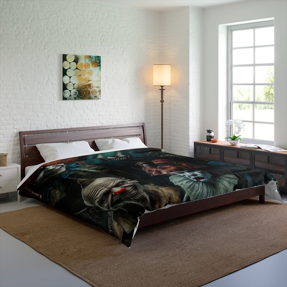 Spooky King Size Haunted House Clown Horror Comforter Halloween Metal Band Design