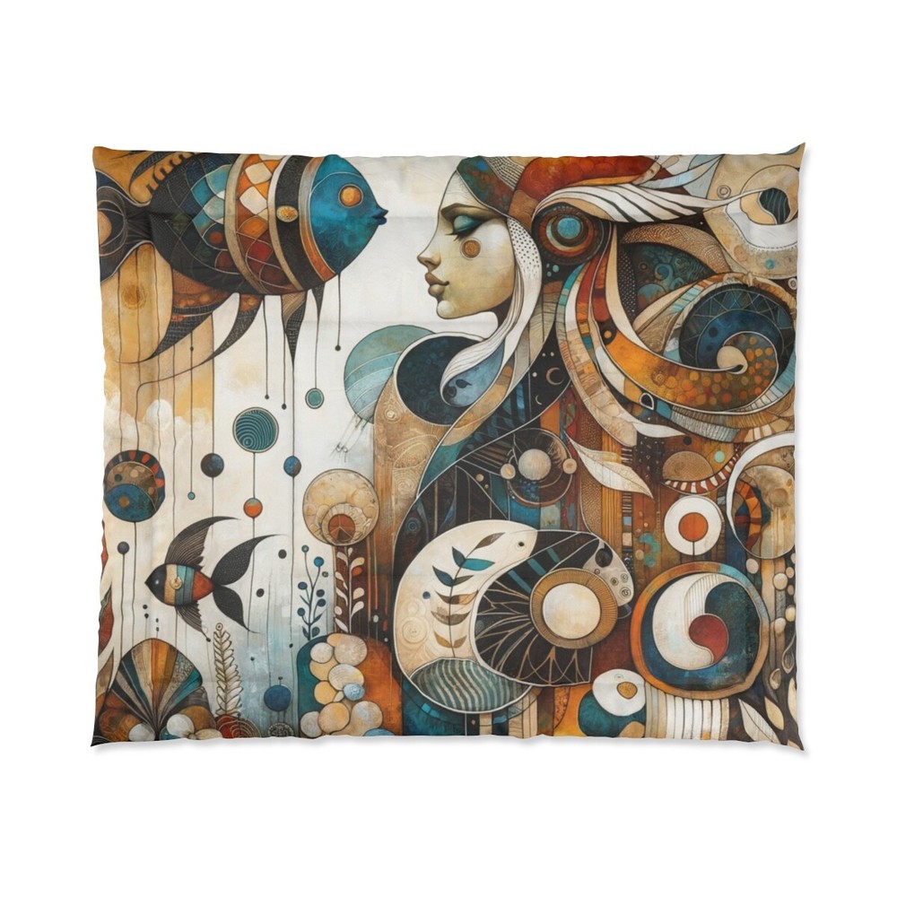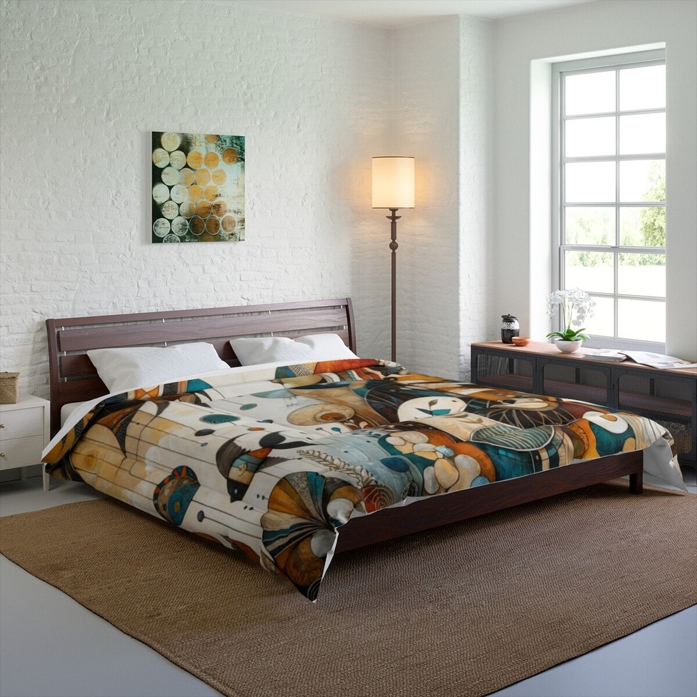 Bohemian King Size Comforter with Rustic Nature Art in Lagenlook Style