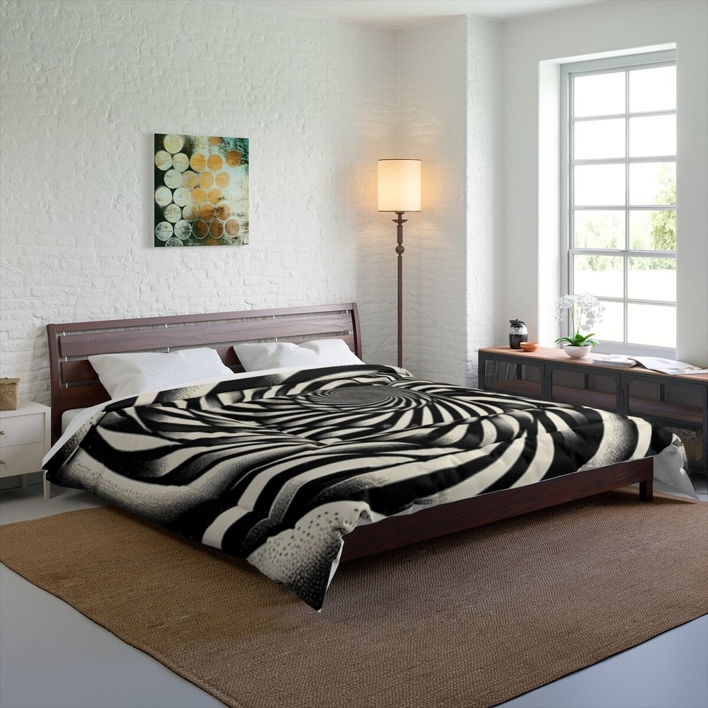 Trippy Psychedelic King Size Comforter with Optical Illusion Festival Art