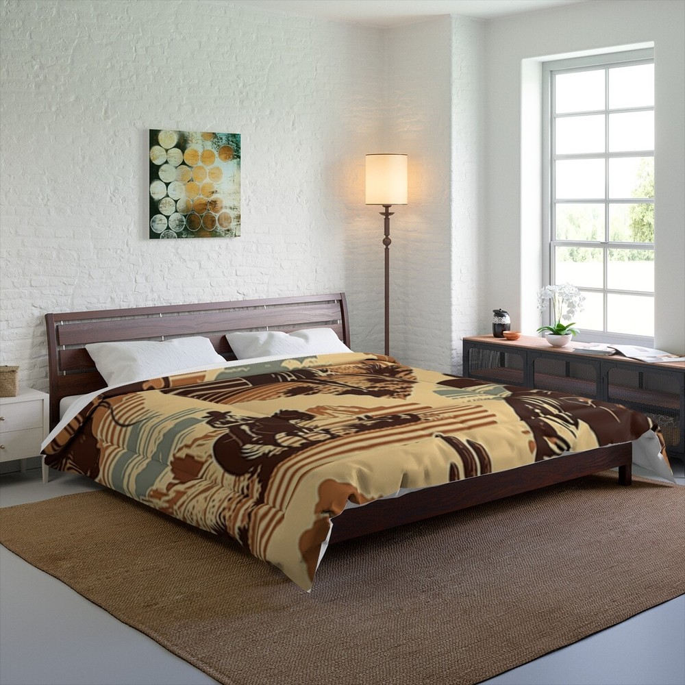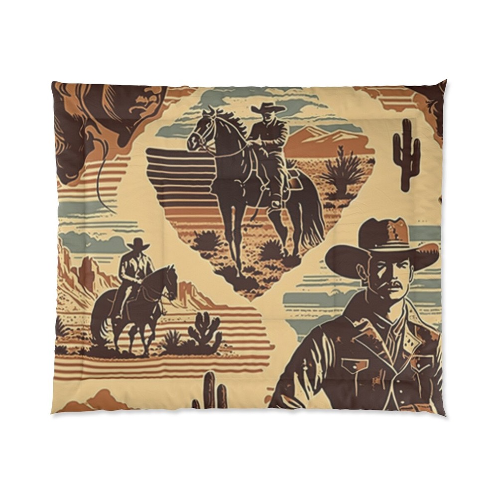 Retro Western Cowboy Rodeo King Comforter with Cactus Desert Design