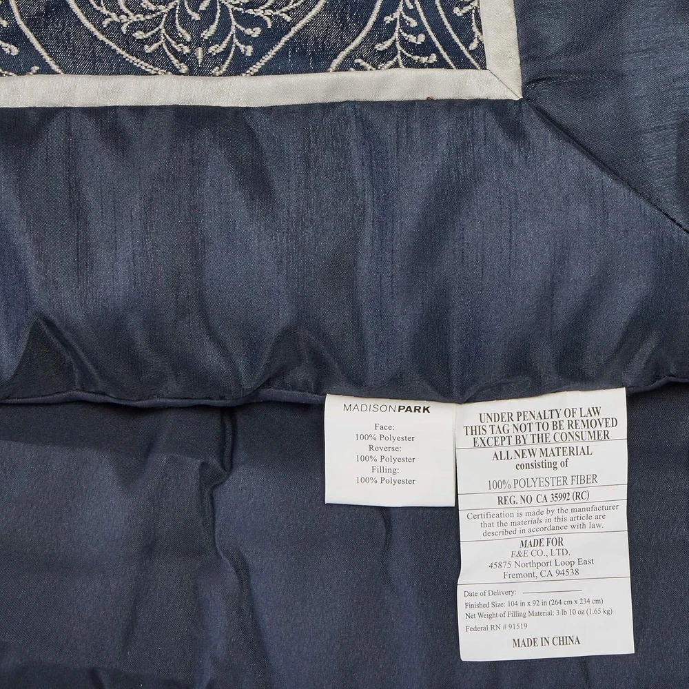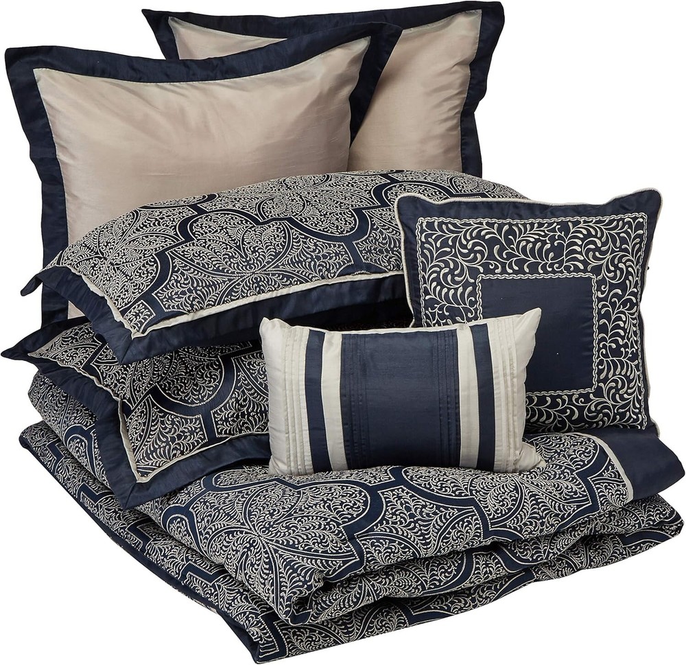 King Size Medina Comforter Set - All-Season Cozy Bedding with Decorative Pillows ‹ › ‹ › ‹ › ‹ › ‹ › ‹ › ‹ › ‹ › ‹ › ‹ › ‹ › ‹ › King Size Medina Comforter Set Transform your bedroom into a luxurious retreat with the exquisite King Size Medina Comforter Set. This all-season cozy bedding ensemble is designed to add a touch of elegance and comfort to your sleeping space. Features: 100% Polyester for easy maintenance and comfort. Imported, ensuring high quality and durability. Unique woven jacquard fabrication featuring silver threads on a navy blue base, creating a stunning key design. Faux silk fabric exuding a natural sheen and luxurious appeal. Set includes: 1 Comforter: 104"W x 92"L 2 King Shams: 20"W x 36"L 2 Euro Shams: 26"W x 26"L 1 Bed Skirt: 78"W x 80"L + 15"D 2 Decorative Pillows: 18"W x 18"L / 12"W x 18"L Care Instructions: Machine wash cold, gentle cycle, separately. Do not bleach; tumble dry low, remove promptly. Do not iron; spot clean pillows. Use a large capacity commercial washer/dryer if needed. Embrace Luxury and Comfort: The Medina collection not only enhances the aesthetic appeal of your room but offers unmatched comfort and durability. The two solid euro shams and three decorative pillows, featuring intricate embroidery and fabric manipulation, seamlessly tie the luxurious look together. Perfect for both relaxation and elegance, this bedding set is designed for every season, ensuring that you stay cozy and stylish year-round. Elevate your bedroom experience with the King Size Medina Comforter Set today! Shipping Free & Fast Shipping - We offer free shipping to most of the USA with a normal delivery time of 3-7 days. However, due to the current situation, additional delivery time (up to 3 weeks) may be required for some items. Alternative Carriers - We may use alternative carriers (e.g. USPS, FedEx, UPS, etc.) to ensure your package arrives safely and on time. Due to the use of multiple carriers, we are unable to provide a tracking number automatically. Handling Time - Orders are processed and shipped within 1-2 business days of receiving cleared payment. Shipping Restrictions - Shipping to Alaska, Hawaii, Puerto Rico, Guam, and other US territories may incur shipping charges or delivery restrictions. Please contact us before ordering, or your order can be refunded/cancelled. State Restrictions - There may be restrictions based on your state of purchase. For example, certain items may not be shipped to California due to state regulations. Contact for Tracking Updates - If you require tracking updates or have any concerns about the delivery of your order, please feel free to contact us, and we will be happy to assist you. Return 30-Day Hassle-Free Returns - We want you to be completely satisfied with your purchase. If you are not, you can return the item within 30 days of receiving it for a full refund or exchange. Easy Return Process - To start a return, simply contact us and we will provide you with a prepaid return shipping label and detailed instructions. Restocking Fee - There are no restocking fees for returns. However, the buyer is responsible for return shipping costs if the return is not due to a seller's error. Refund Processing Time - Refunds will be processed within 5 business days of receiving the returned item in its original condition. Payment We accept all major credit cards, PayPal, and Apple Pay for your convenience. Your payment information is secure and encrypted to ensure a safe and seamless transaction. Please complete your payment within 3 days of purchase to avoid any delays in shipping. Feedback Your feedback is extremely important to us. We strive to provide the best products and customer service possible. If you are satisfied with your purchase, please take a moment to leave us a positive review. If you have any concerns or issues with your order, please contact us before leaving negative feedback. We are committed to resolving any problems and ensuring your satisfaction. Contact Us If you have any questions or concerns, please feel free to reach out to our customer support team. You can contact us through the eBay messaging system. We are available Monday to Friday, 9:00 am to 5:00 pm EST, and we will do our best to respond to your inquiry within 24 hours. Buy it now and enjoy a pleasant shopping experience! UPC: Not Set Model: Not Set Set Includes: Bed Skirt,Comforter,Comforter Set,Shams,Decorative Pillows Material: Polyester Features: None,Elegant,Luxurious,Cozy,All Season Character: Not Set Theme: Seasonal Care Instructions: Do Not Bleach,Do Not Iron,Machine Wash,Machine Wash Cold,Tumble Dry Low Department: Unisex Baby & Toddler,Kids,Teens,Adults,Unisex Adult Room: Bedroom Labels & Certifications: Not Set Size: King Type: Comforter Set Brand: Unbranded Color: Navy Fill Material: Synthetic Pattern: Solid Item Width: Not Set Item Length: Not Set MPN: Not Set Insulation: All Seasons Number of Items in Set: 8 Style: Contemporary Character Family: Not Set Season: All Country/Region of Manufacture: Not Set Closure Type: No Closure Drop Length: Not Set Thread Count: Not specified GSM (Grams per Square Meter): Not specified Product Line: Not Set Personalize: Not Set