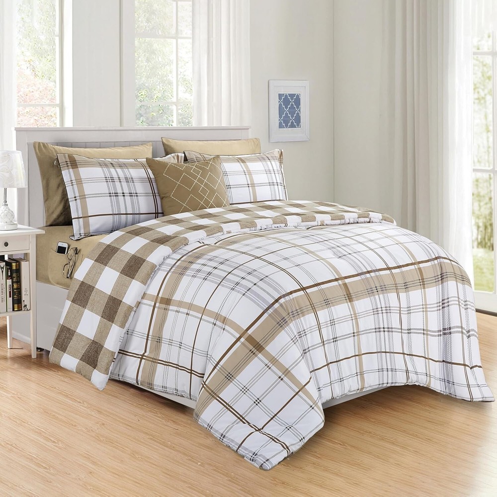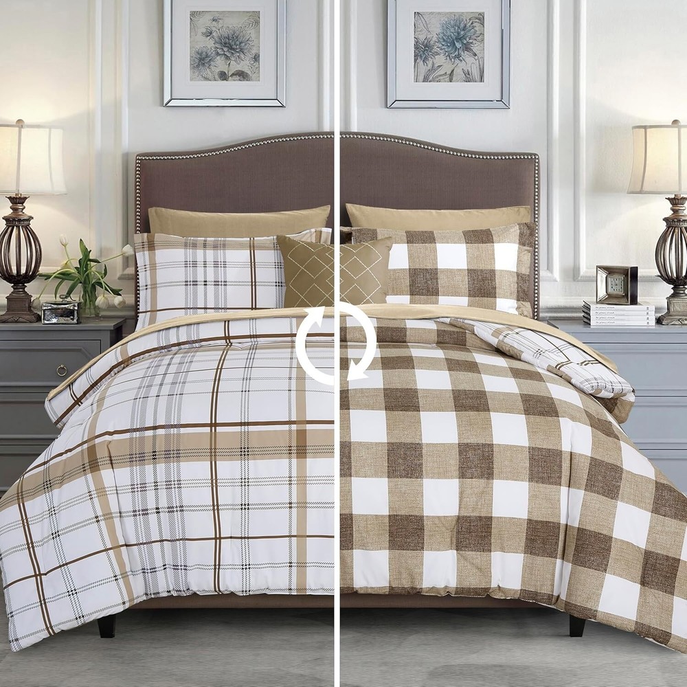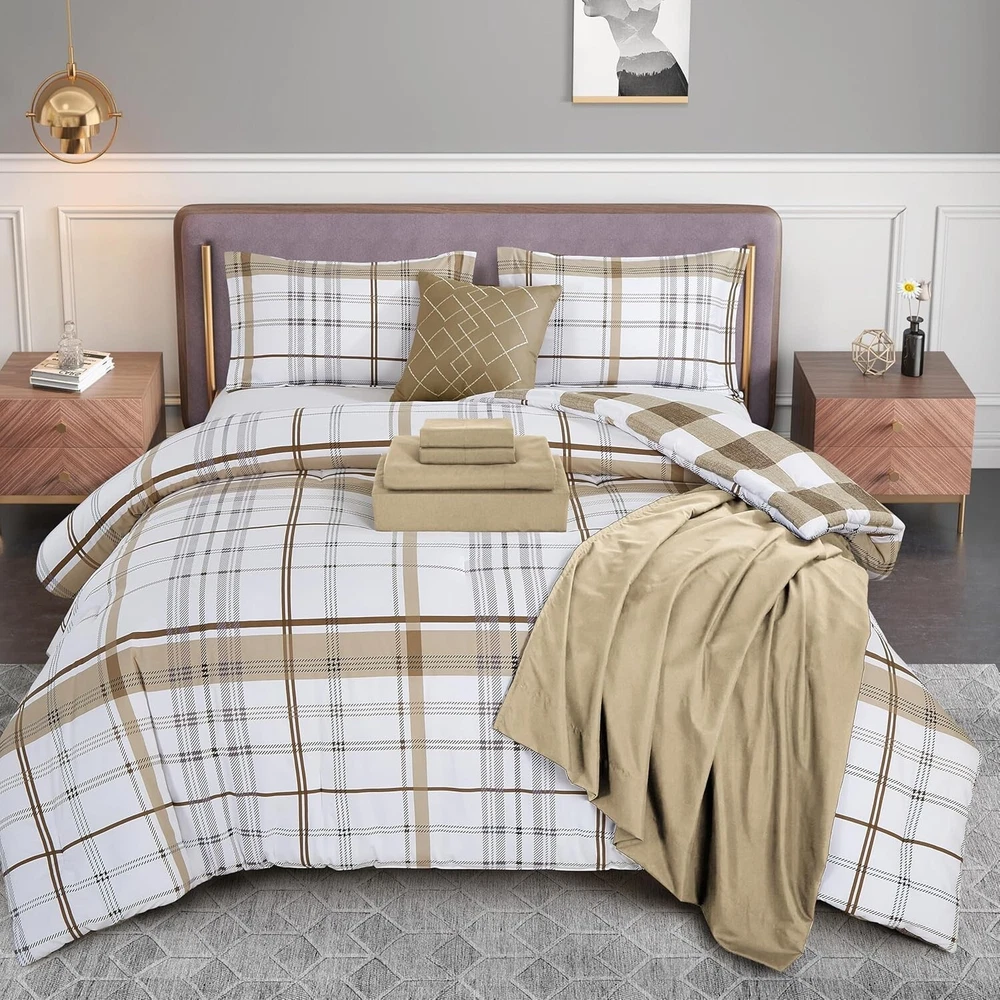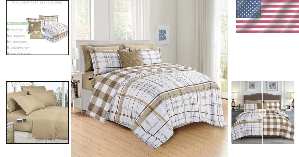 King/Cal King 8-Piece Comforter Set - Cozy Plaid Design with Storage Solutions < class="slides"> ‹ › ‹ › ‹ › ‹ › ‹ › ‹ › ‹ › ‹ › ‹ › King/Cal King 8-Piece Comforter Set Transform your bedroom into a haven of comfort and style with our Cozy Plaid Design Comforter Set, crafted with luxurious microfiber for a superior sleeping experience. Product Details: <> Dimensions: <> 1 Comforter: 108" X 90" 2 Pillow Shams: 20" X 36" 1 Flat Sheet: 108" X 102" 1 Fitted Sheet: 78" X 80" (Deep-pocket up to 16 inches) 2 Pillowcases: 20" X 40" 1 Decorative Pillow Double-Sided Storage Pockets: Keep your personal belongings close at hand with quality bed sheets featuring side pockets for glasses, remote controls, cell phones, and more. Quality Craftsmanship: Firm stitching ensures that the filling remains evenly distributed, promoting warmth without the worry of shifting or bunching. OEKO-TEX 100 Standard Certified: Tested for harmful substances and produced responsibly, ensuring that you're sleeping safely and sustainably. Easy Care: Machine wash cold and tumble dry low for effortless maintenance. Your comforter will arrive vacuum-sealed; allow it to fluff for up to 24 hours. Why You’ll Love It: <> Luxurious, ultra-soft construction that mimics the loftiness and warmth of down. Elegant Pintuck design that adds a touch of sophistication to your bedroom décor. Durable and resistant to stains, shrinkage, and wrinkles for long-lasting beauty. Perfect for all seasons, bringing you cozy warmth and breathability year-round. Indulge in comfort and elegance with our King/Cal King 8-Piece Comforter Set - the perfect addition to enhance your home. Experience the restful sleep you deserve; consider this luxurious set as a thoughtful gift for any occasion or a delightful treat for yourself. Order now and elevate your bedroom to new heights of comfort and style! Shipping <> <> Free & Fast Shipping - We offer free shipping to most of the USA with a normal delivery time of 3-7 days. However, due to the current situation, additional delivery time (up to 3 weeks) may be required for some items. Alternative Carriers - We may use alternative carriers (e.g. USPS, FedEx, UPS, etc.) to ensure your package arrives safely and on time. Due to the use of multiple carriers, we are unable to provide a tracking number automatically. Handling Time - Orders are processed and shipped within 1-2 business days of receiving cleared payment. Shipping Restrictions - Shipping to Alaska, Hawaii, Puerto Rico, Guam, and other US territories may incur shipping charges or delivery restrictions. Please contact us before ordering, or your order can be refunded/cancelled. State Restrictions - There may be restrictions based on your state of purchase. For example, certain items may not be shipped to California due to state regulations. Contact for Tracking Updates - If you require tracking updates or have any concerns about the delivery of your order, please feel free to contact us, and we will be happy to assist you. Return <> <> 30-Day Hassle-Free Returns - We want you to be completely satisfied with your purchase. If you are not, you can return the item within 30 days of receiving it for a full refund or exchange. Easy Return Process - To start a return, simply contact us and we will provide you with a prepaid return shipping label and detailed instructions. Restocking Fee - There are no restocking fees for returns. However, the buyer is responsible for return shipping costs if the return is not due to a seller's error. Refund Processing Time - Refunds will be processed within 5 business days of receiving the returned item in its condition. Payment We accept all major credit cards, PayPal, and Apple Pay for your convenience. Your payment information is secure and encrypted to ensure a safe and seamless transaction. Please complete your payment within 3 days of purchase to avoid any delays in shipping. Feedback Your feedback is extremely important to us. We strive to provide the best products and customer service possible. If you are satisfied with your purchase, please take a moment to leave us a positive review. If you have any concerns or issues with your order, please contact us before leaving negative feedback. We are committed to resolving any problems and ensuring your satisfaction. Contact Us If you have any questions or concerns, please feel free to out to our customer support team. You can contact us through the eBay messaging system. We are available Monday to Friday, 9:00 am to 5:00 pm EST, and we will do our best to respond to your inquiry within 24 hours. Buy it now and enjoy a pleasant shopping experience! Set Includes: Comforter,Decorative Pillow,Fitted Sheet,Flat Sheet,Pillowcase,Pillow Sham Material: Microfiber Features: Reversible,Stain Resistant,Wrinkle Resistant,Deep-pocket,Storage Pockets Care Instructions: Do Not Bleach,Machine Wash,Machine Wash Cold,Tumble Dry Low Department: Unisex Baby & Toddler,Kids,Teens,Adults Room: Bedroom Size: King Type: Comforter Set Color: Taupe Fill Material: Down Pattern: Plaid Number of Items in Set: 8 Style: Lodge Insulation: All Seasons Season: All Closure Type: No Closure Thread Count: 150 GSM (Grams per Square Meter): Below 150