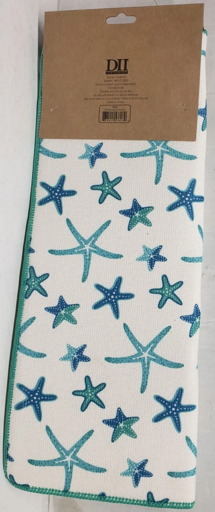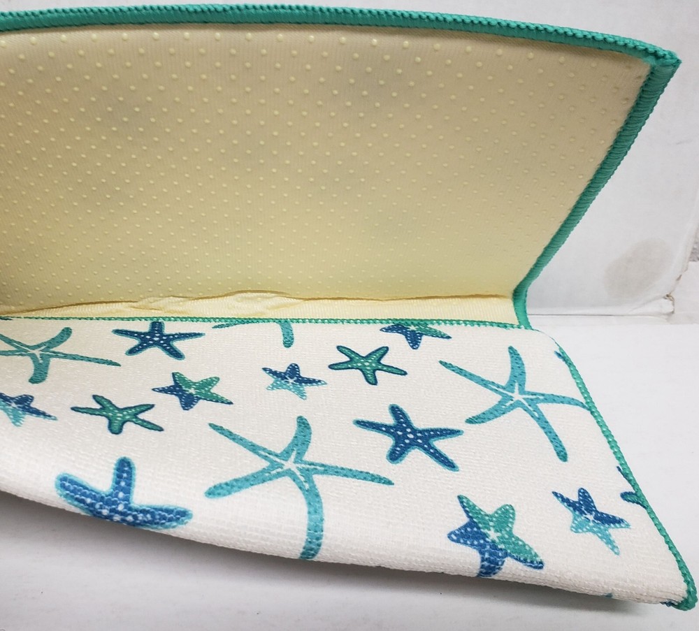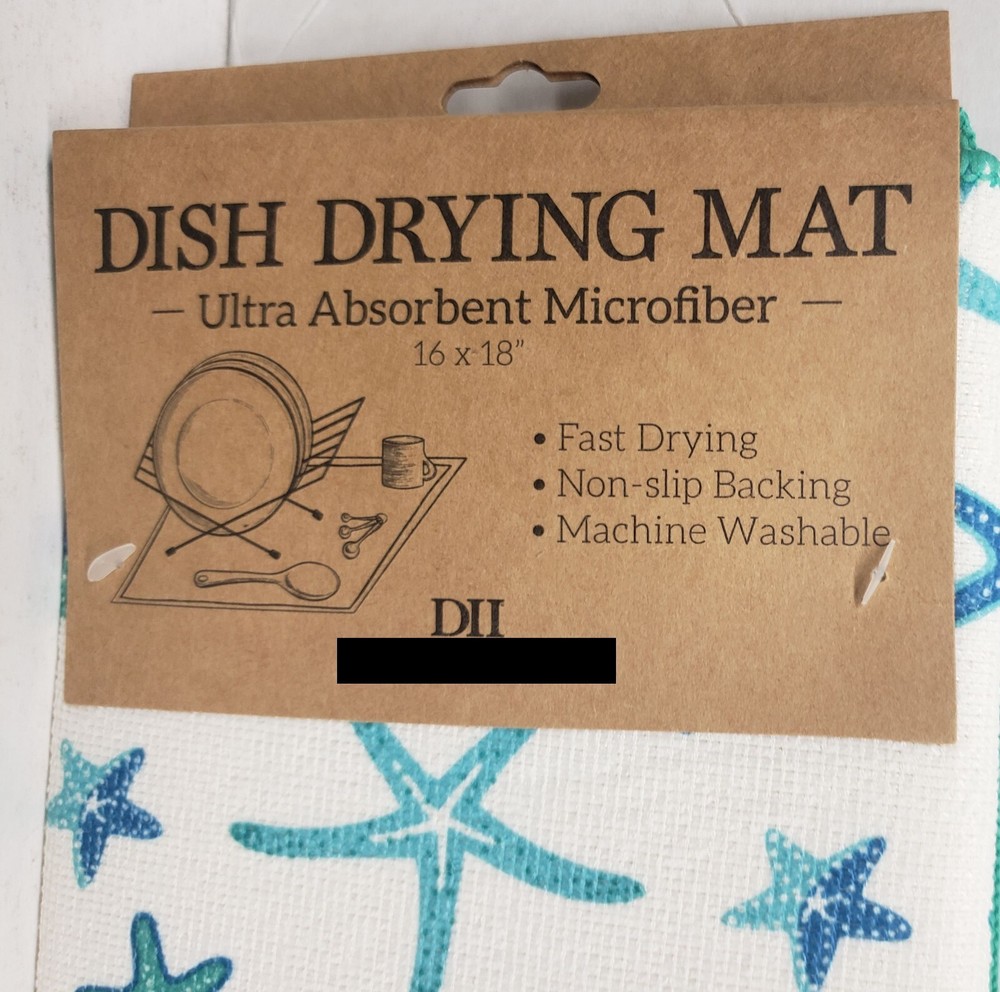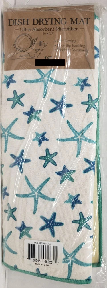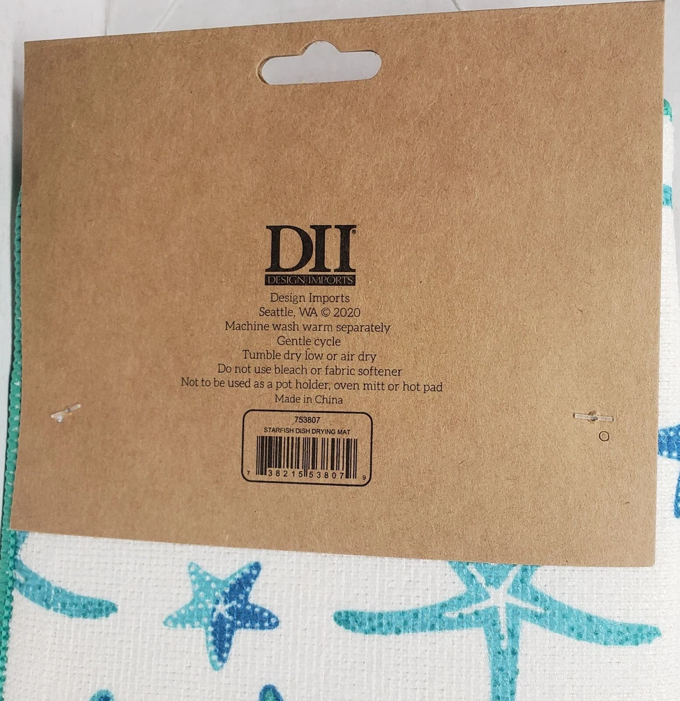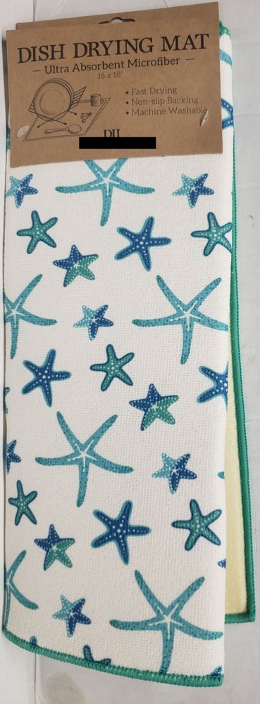 I'm selling a Kitchen Microfiber Dish Drying Mat ( 16" L x 18" W) SEALIFE, BLUISH STARFISH as seen on pictures. Make a splash with this dish drying mat featuring a beach blue starfish pattern. Ultra absorbent, lightweight microfiber absorbs water, cushions dishes, and dries quickly. Non-slip backing ensures mat stays in place on countertop. Perfect for spring/summer, everyday, or to add a pop of color to the kitchen. Mat measures 16" x 18". Machine washable. Recommended care instructions: Machine wash cold separately on gentle cycle. Tumble dry low or air dry flat. Do not use bleach or fabric softener. Not to be used as a pot holder, oven mitt, or hot pad. Made in China by Design Imports. The item comes in original packaging. Please check out my other listings and if you buy multiple items, please contact me and I will find out how I can combine your shipping. I ship to USA only (or Global Shipping for international buyers)
