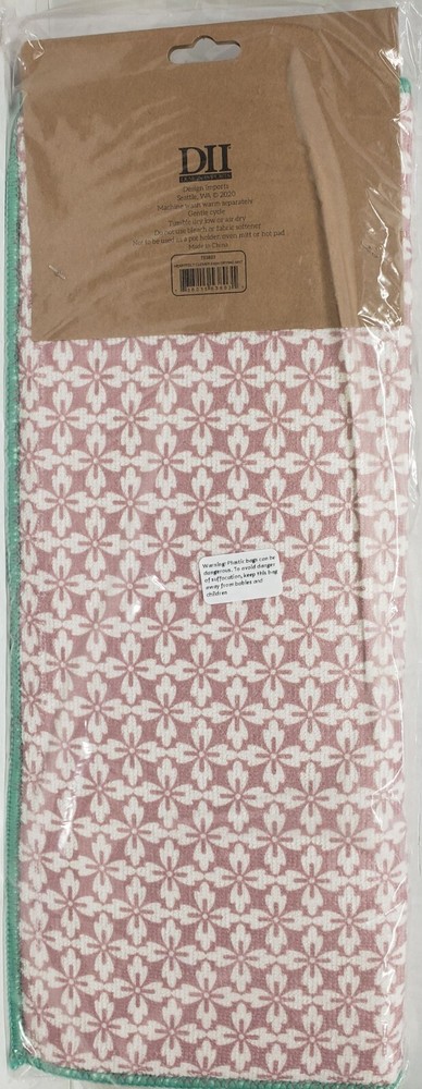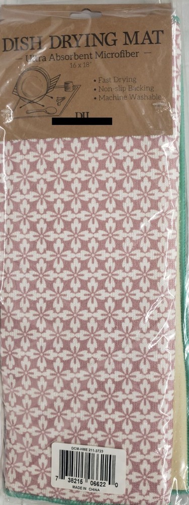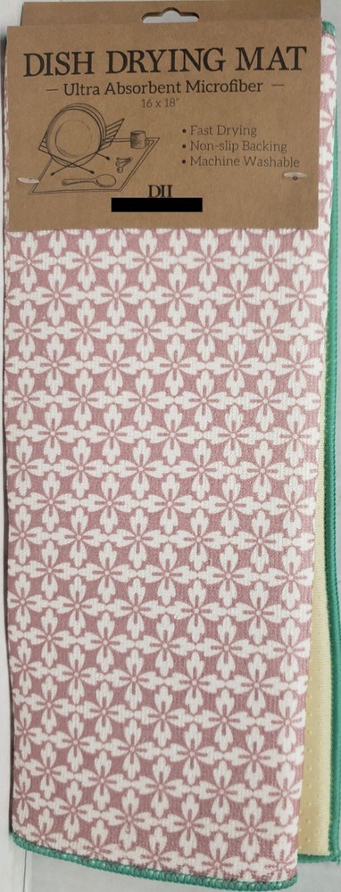 I'm selling a Kitchen Microfiber Dish Drying Mat ( 16" L x 18" W) PINK HEARTFELT GLOVER PATTERN as seen on pictures. Ultra absorbent, lightweight microfiber absorbs water, cushions dishes, and dries quickly. Non-slip backing ensures mat stays in place on countertop. Mat measures 16" x 18". Machine washable. Recommended care instructions: Machine wash cold separately on gentle cycle. Tumble dry low or air dry flat. Do not use bleach or fabric softener. Not to be used as a pot holder, oven mitt, or hot pad. Made in China by Design Imports. The item comes in original packaging. Please check out my other listings and if you buy multiple items, please contact me and I will find out how I can combine your shipping. I ship to USA only (or Global Shipping for international buyers)