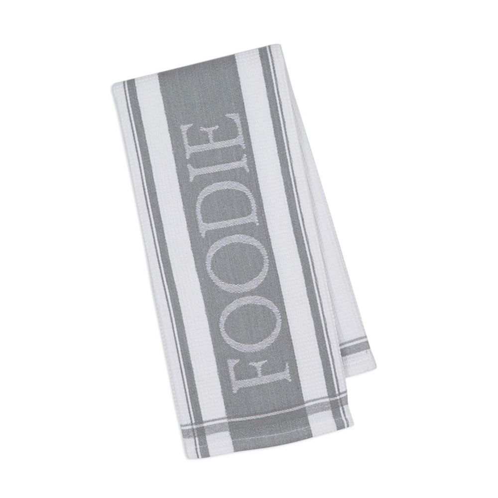 DII Design Imports Grey Foodie Jacquard Kitchen Dishtowel 100% Cotton Waffle Weave Kitchen Towel Set Hanging Loop 18 X 28" Grey Foodie Jacquard Dishtowel