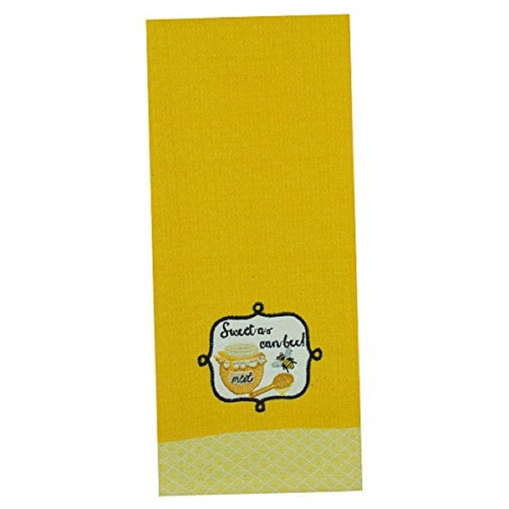 DII Design Imports Sweet as can Bee Embellished Kitchen Dishtowel 18 x 28" 100% Natural Cotton Machine Washable Hanging Loop