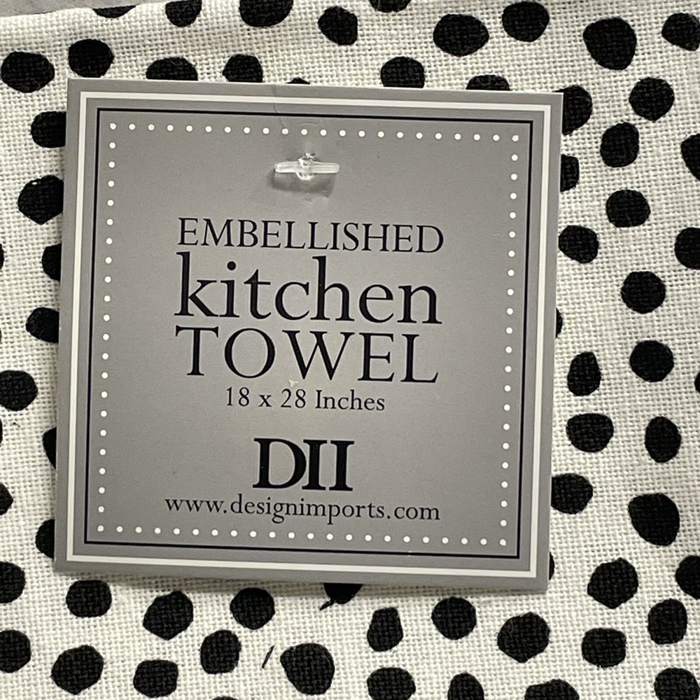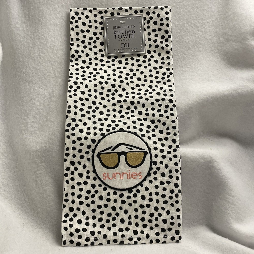 Design Imports Embellished Kitchen Towel featuring "Sunnies" with a pair of sunglasses on white material with black spots. Towel is brand new with tag attached....