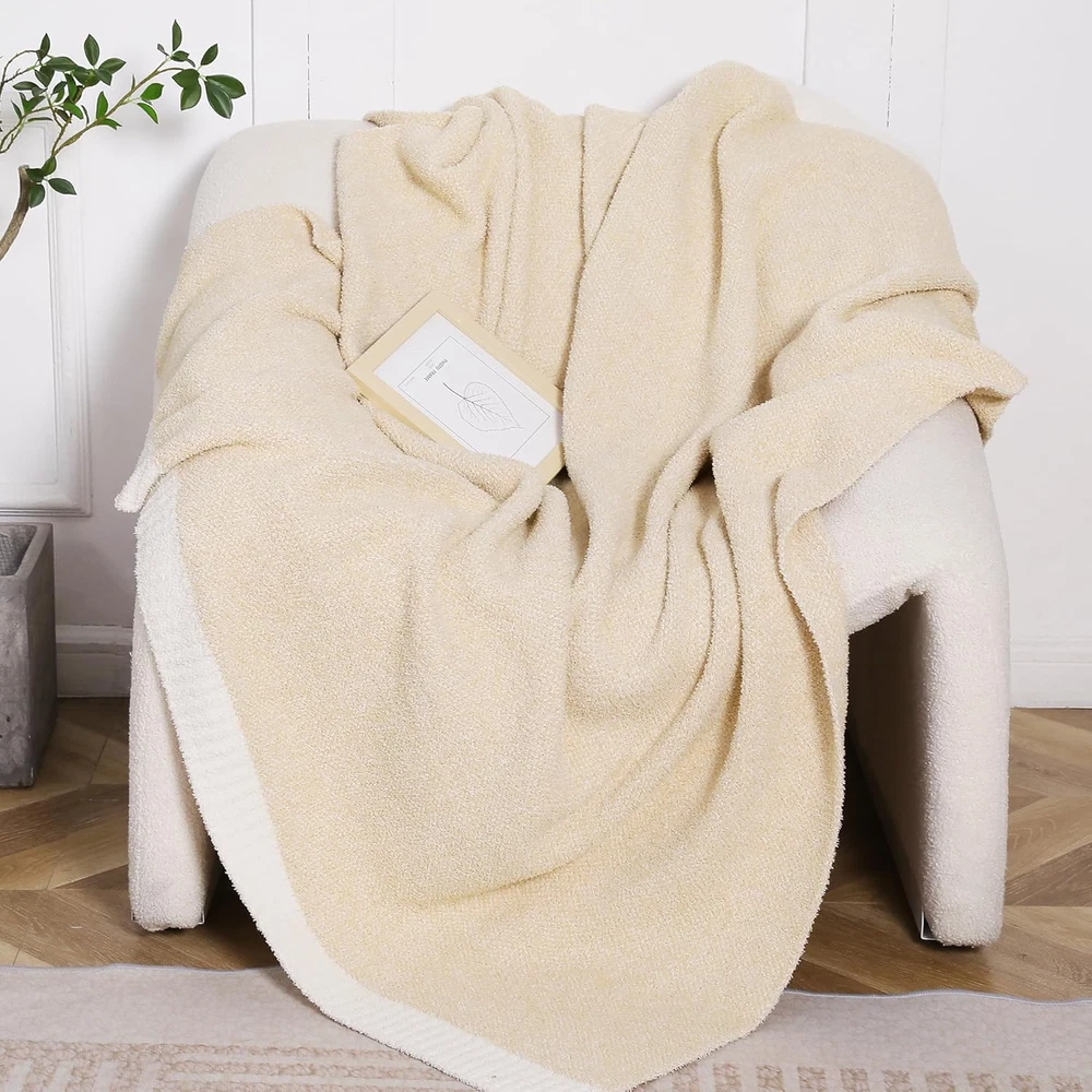 Ultra Soft Knit Throw Blanket - Our throw blankets are made from microfiber feather yarns that are soft, smooth and have a velvety rich texture, whether you're snuggling up on a bed or sofa, our blankets will give you a great experience. Reversible Knitted Blanket- This blanket is brushed on both sides, soft and cozy for all seasons. The unique heathered color knitting process and charming appearance make it not only practical but also the best decoration. Multipurpose Throw Blanket - Our blankets can be used not only on beds and sofas, but also in the car, camping, picnic, office, travel, theater, and more wherever you want extra comfort, lightweight fluffy blankets to keep you warm and cozy at all times. Beautiful blankets also for photoshoots and gift ideas. Easy Care - Our blankets are machine washable and tumble dry and are not recommended to be washed with clothing with sharp objects. If there is an odor from the warehouse or the packaging bag on the blanket, it is recommended to wash it before use. Best Gift Ideas - Our blankets are Oeko-tex certified, which means we use 100% healthy materials. Take a SeaRoomy throw blanket for yourself, or for your family and friends, it's the perfect gift idea for birthdays, Mother's Day,Thanksgiving, Halloween, Christmas, Valentine's Day, Father's Day, housewarming and more. Product Description Knit Throw Blanket Ultra soft and breathable knitted throw blanket gives you a cloud-like feeling. Enjoy comfort and warmth all year round with this premium knitted throw. The blanket's fluffy fibers add extra comfort and are ideal for adding elegance and coziness to sofas, couches, beds, armchairs or living rooms. Super soft, durable and warm, ideal for snuggling or relaxing on couches, sofas, beds, cars and airplanes. You can also take the blanket with you on trips or to outdoor activities such as camping or picnics. Reversible heather color on both side An excellent choice for gift-giving 1 Unique Design 2 Giftable and Decorative Beige Knit Throw Blanket Soft Knit Throw Blankets 51"×63" Size 51"×63" 100% Polyester Material 100% Polyester Machine Washable Reversible,Soft,Cozy Features Reversible,Soft,Cozy Babies, Kids, Adults Suit for Babies, Kids, Adults 51"×63" Size 51"×63" 100% Polyester Material 100% Polyester Machine Washable Reversible,Soft,Cozy Features Reversible,Soft,Cozy Babies, Kids, Adults Suit for Babies, Kids, Adults 51"×63" Size 50"x70" 100% Polyester Material 100% Polyester Machine Washable Reversible,Soft,Cozy Features Reversible,Soft,Cozy Babies, Kids, Adults Suit for Babies, Kids, Adults 51"×63" Size 50"x70" 100% Polyester Material 100% Polyester Machine Washable Reversible,Soft,Cozy Features Reversible,Soft,Cozy Babies, Kids, Adults Suit for Babies, Kids, Adults Checkered Blanket Pink Checkered Blanket Green Leopard Throw Blanket White Knit Throw Blanket