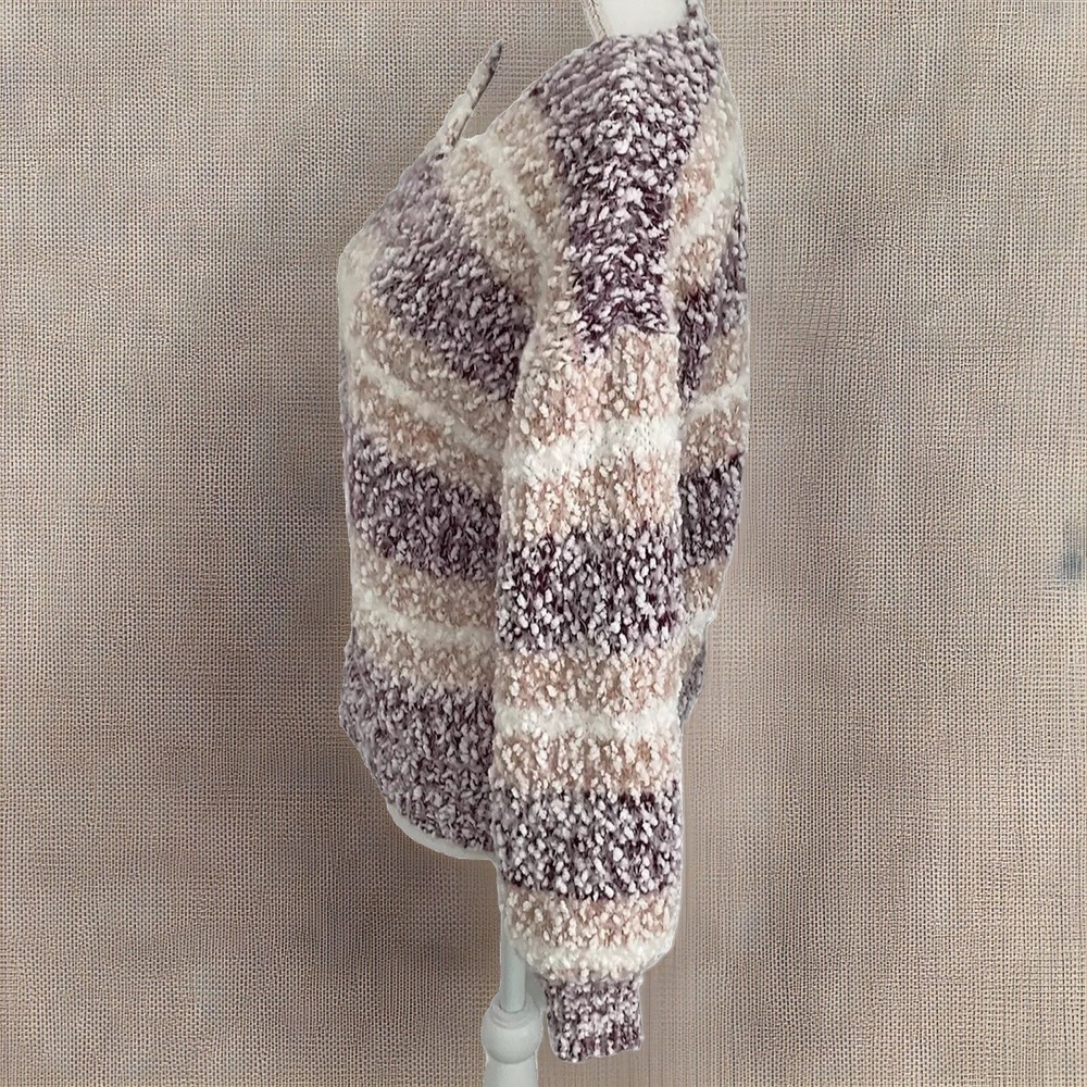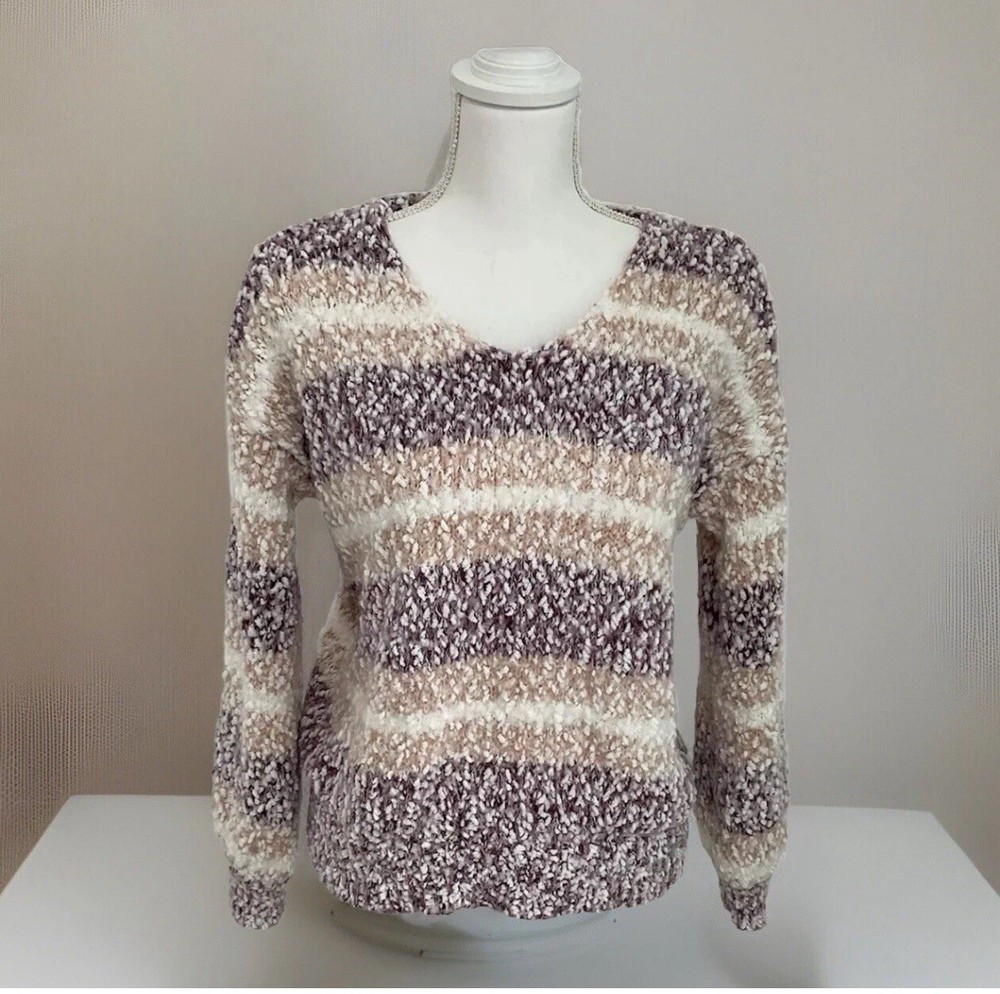 This sweater is incredibly soft and cozy—perfect for chilly days! The V-neck and relaxed fit make it super comfortable, and the cute striped pattern adds a stylish touch. It’s lightweight yet warm, great for layering or wearing on its own. The dropped shoulders give it a laid-back vibe, and the quality feels amazing. Definitely a must-have for the colder seasons!