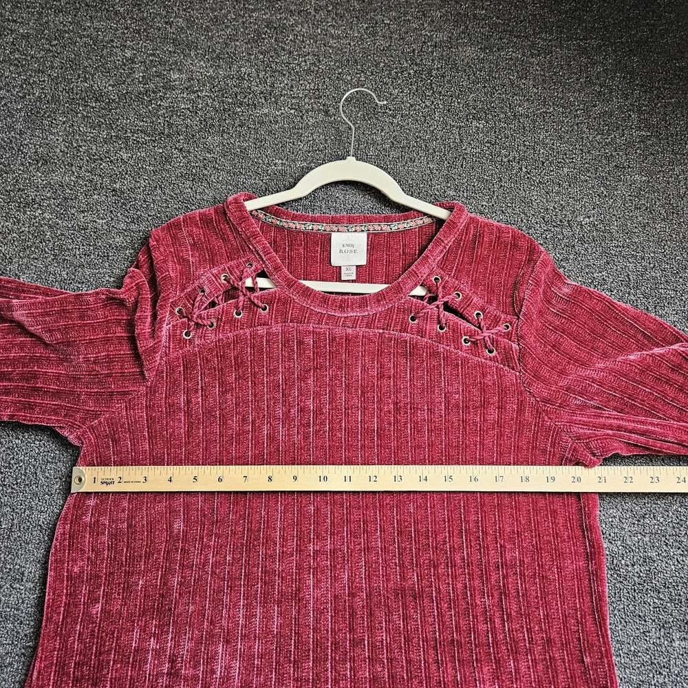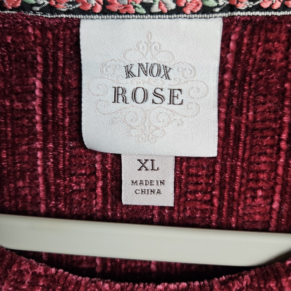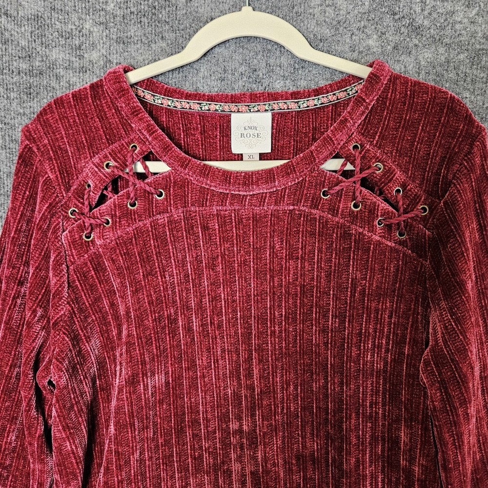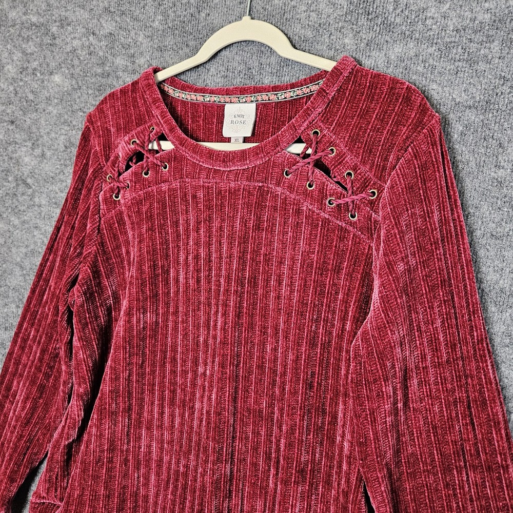 Knox Rose Sweater Womens XL Burgundy Purple Red Lace Up Rib Knit Soft Cozy. Very good pre-owned condition. See photos for measurements to fit. We ship next day. Happy to combine shipping for additiona...