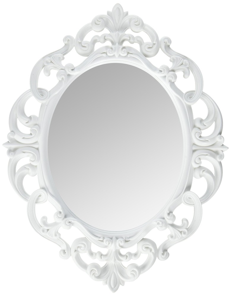 Bring classic style to your space with this charming white oval vintage wall mirror featuring a decorative plastic frame with flourishes and curling vines. Measures approximately 15x 11.5. Comes packaged in an individual shrink wrapped box. Made from high quality materials A must have for every household Great quality item