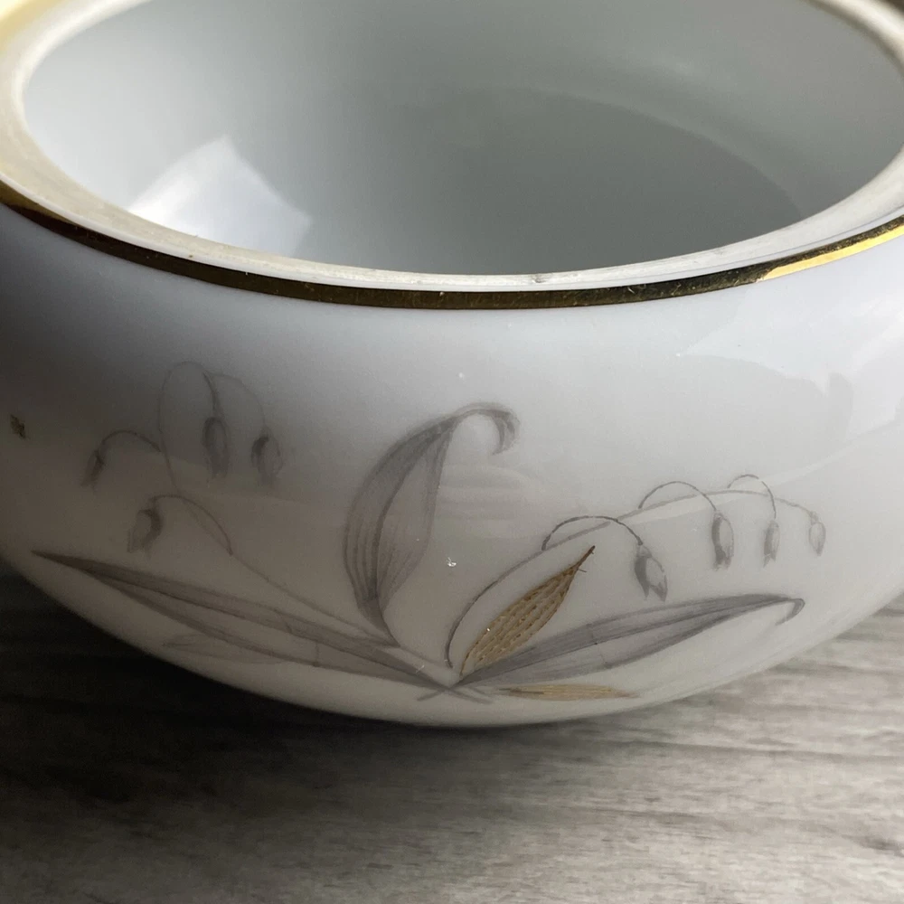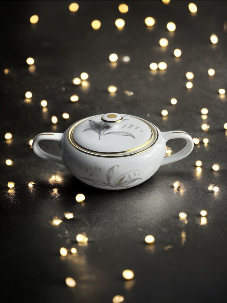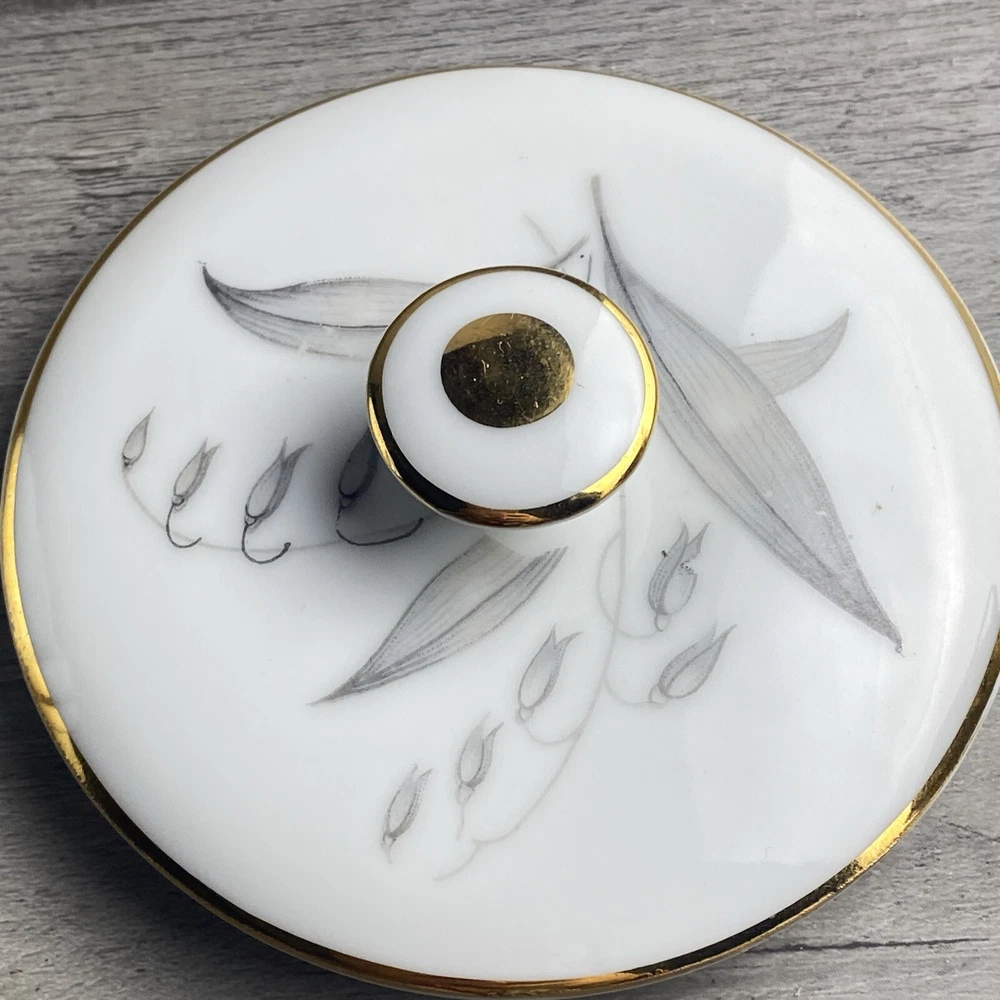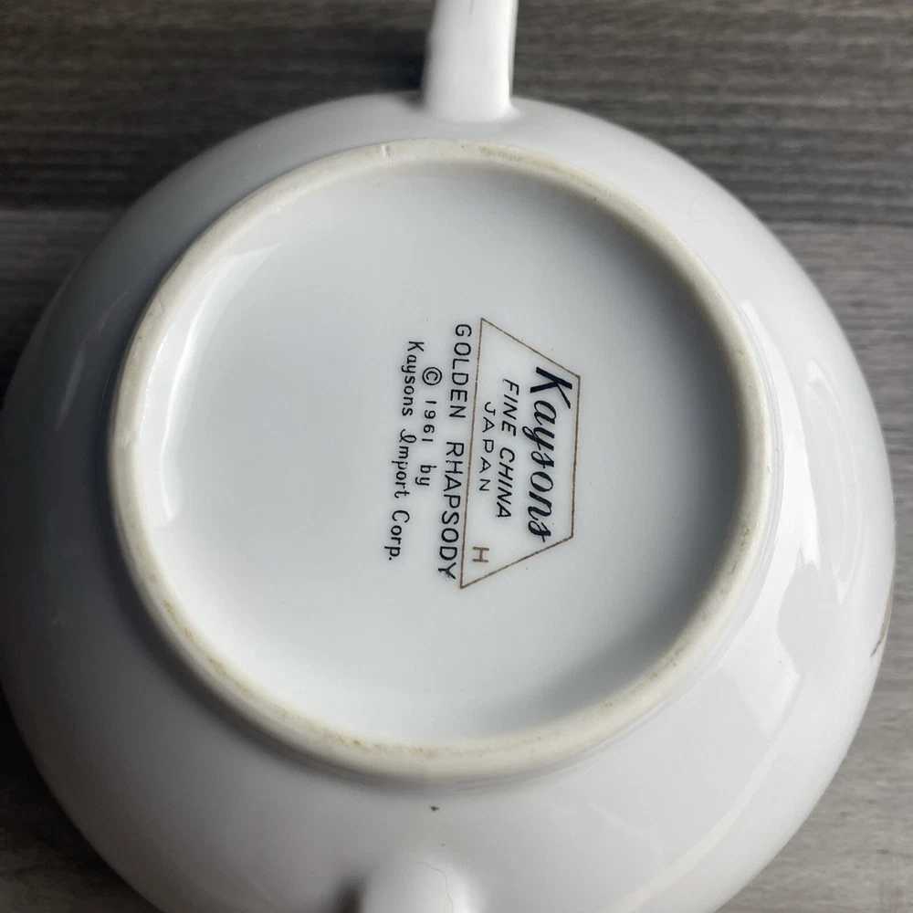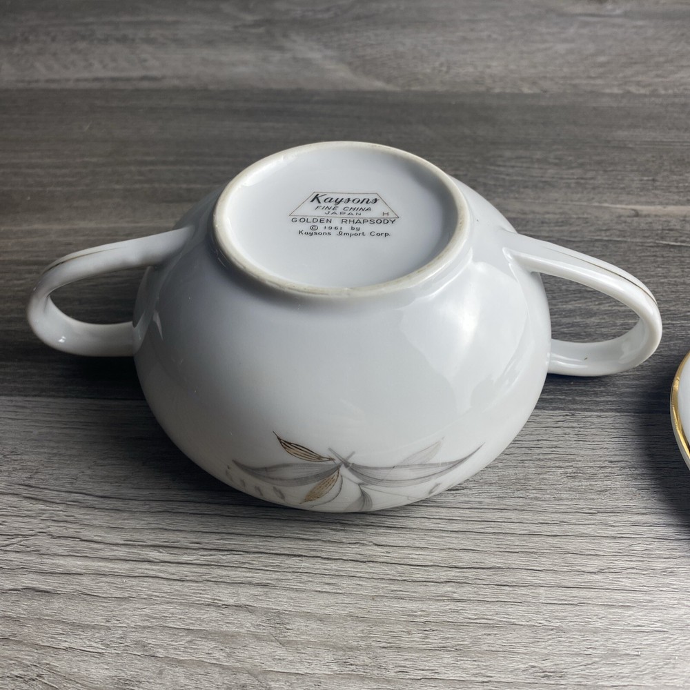 Here is the missing pice to your set. This item is in good condition. After observing I did not see any breaks, cracks or chips. There may be some wear and tear from age and handling. This item is and was used. This exquisite sugar dish and lid set from Kaysons is a true vintage treasure, imported from Japan in 1961. Made of fine china, its round shape and glossy finish are beautifully decorated with a floral pattern in white and gold colors, adding an Art Deco touch to any occasion. Hand wash only, this original piece of Art Pottery is perfect for collectors and lovers of decorative serveware. Its unique features and backstamp make it a must-have for any Pottery & Glass enthusiast, while its unisex style and all-occasion use will make it a delightful addition to any home.