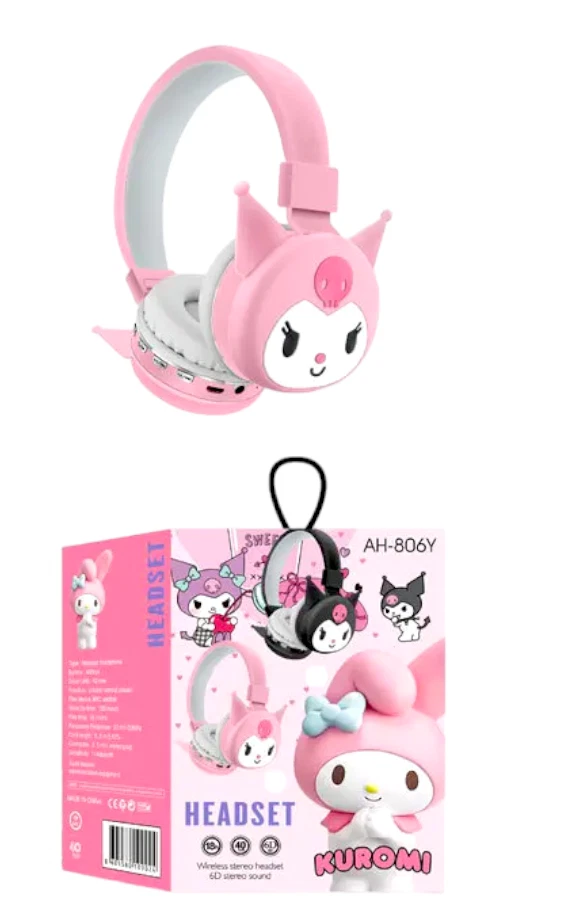 These Kuromi Bluetooth headphones are adorable and super convenient! The sound quality is crisp, and the built-in mic works great for calls. The wireless design is perfect for daily use, and the cute Kuromi design adds a fun touch. Super comfortable and easy to pair—love it!