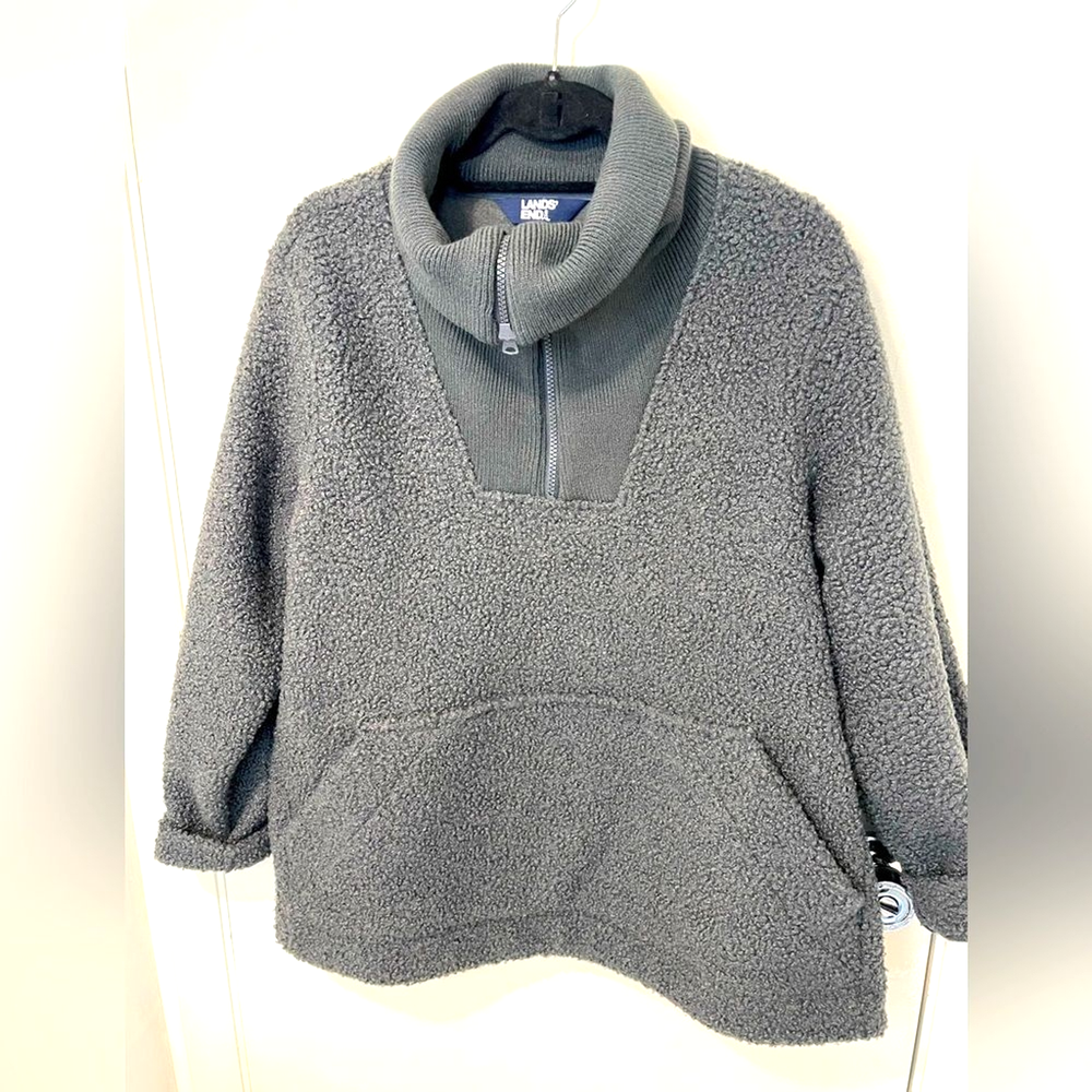 LANDS END Women Cozy Boucle Fleece Pullover Gray Drop Shoulder Kangaroo Pocket LP smoke free super soft I have a ton of EUC Land's End womens clothing listed and will be glad to bundle.