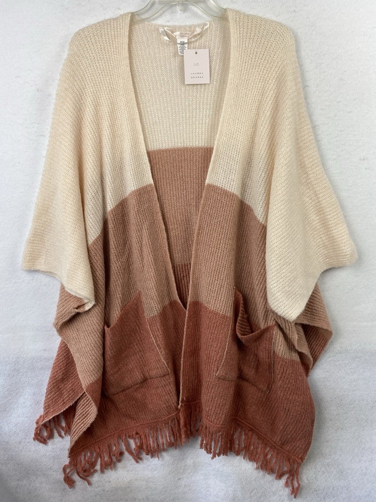 Elevate your winter wardrobe with this stunning Lauren Conrad poncho shawl. The slouchy, relaxed fit of this cardigan-style sweater is perfect for any occasion, whether you're running errands, traveling, or working. The multicolor acrylic material is lightweight, soft, and machine washable for easy care. Featuring tasseled and fringe accents, this sweater has a bohemian, hippie, and western theme, making it a versatile addition to any outfit. The V-neckline and short sleeves provide a classic touch, while the one-size-fits-all design ensures comfort and style. This sweater is perfect for the fall and winter seasons, and it's made in China with high-quality materials.