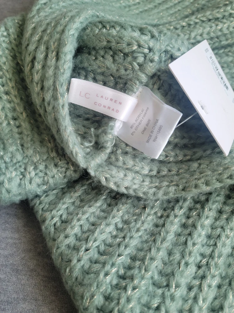 Add some elegant sparkle to your winter wardrobe with this LC Lauren Conrad Brushed Shine Infinity Scarf. The gorgeous green color with silver metallic accents will complement any outfit while keeping you warm and cozy. The ribbed crochet knit and acrylic material make this scarf perfect for fall, winter, and spring. Made in China, this infinity scarf is a must-have for women who value style and comfort. It's the perfect accessory to elevate any outfit, whether you're going out for a night on the town or running errands during the day. Get your hands on this beautiful scarf today and enjoy the warmth and fashion it brings.