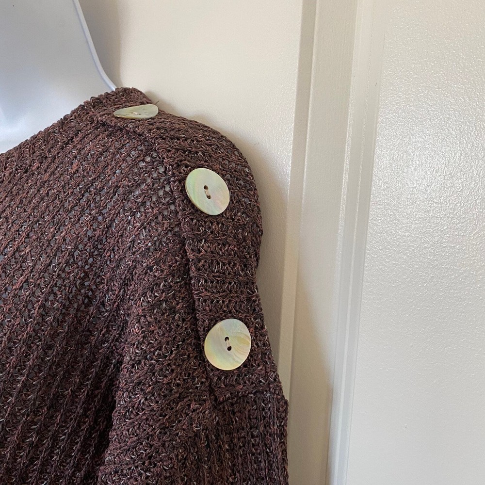 This lightweight pullover is so cozy and stylish—perfect for layering! The unique shoulder button detail adds a cute touch, and the soft fabric feels great. Even pre-owned, it’s in excellent condition with just minor, barely visible snags. Love the rich plum, grey, and brown colors—so versatile! Fits true to size, and the hand-wash care is a breeze. Super happy with this find!
