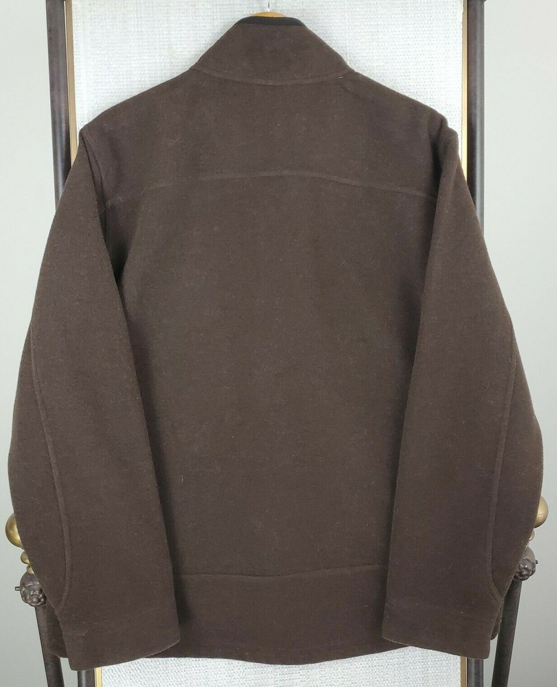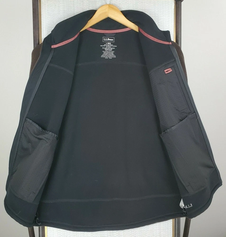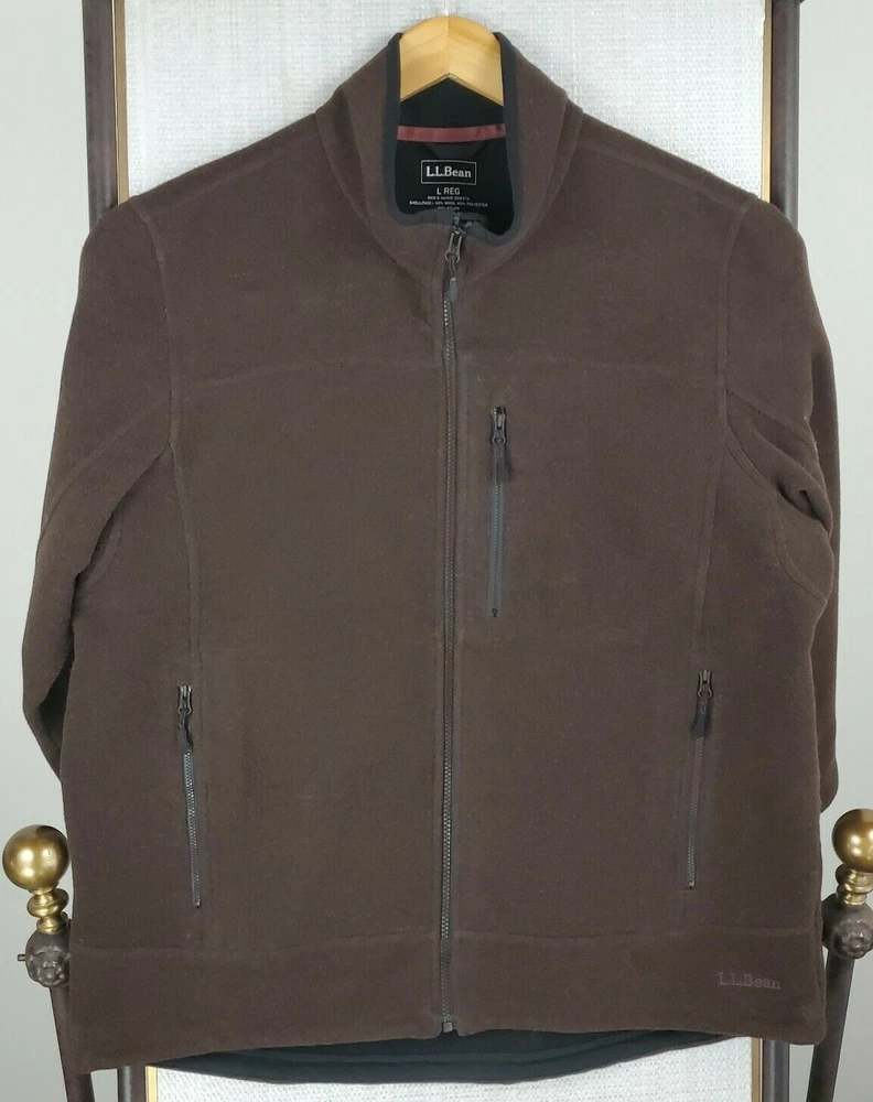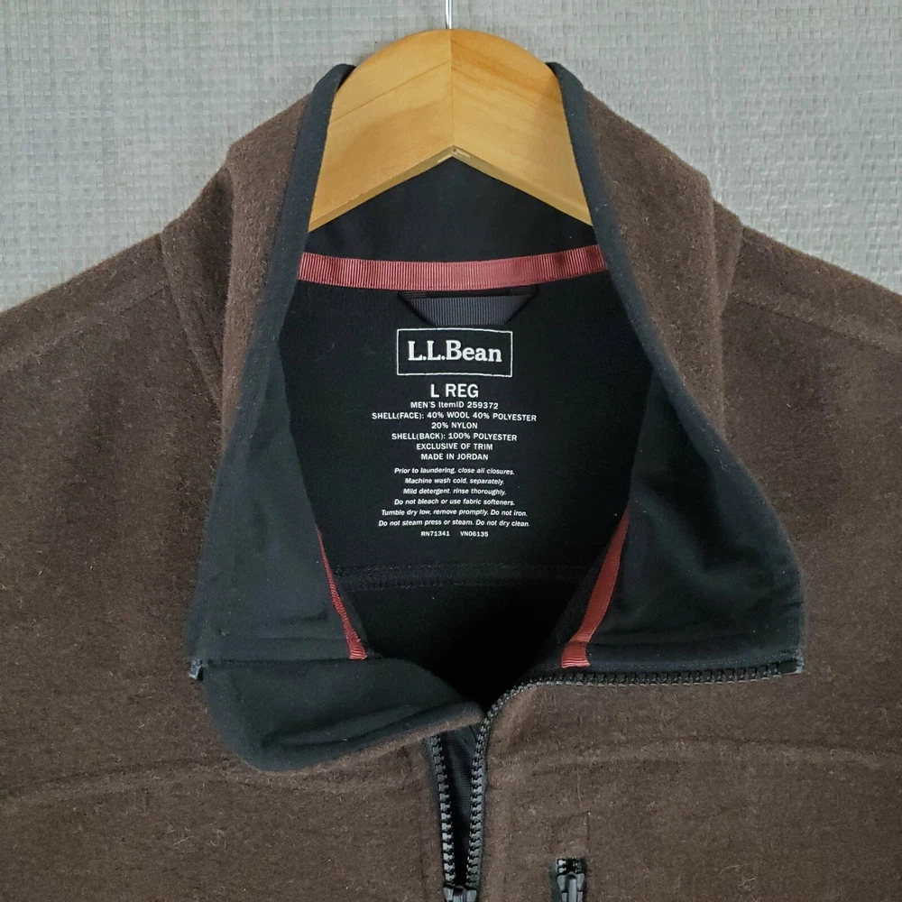 L.L. Bean Men's Hardfaced Wool Blend Full Zip Jacket Features: Full Zip-Zip Hand Pockets-Zip Chest Pocket-Water Resistant-Wind Resistant-Breathable-Moisture Wicking-L.L. Bean Hem Logo Material: Shell: 40% Wool / 40% Polyester / 20% Nylon Lining: 100% Polyester Size: Large Color: Brown Chest(armpit to armpit): 25" Length: 31" Condition: excellent condition- no rips, stains, tears, holes Shipping: USPS Priority Mail - Delivered in 1-3 Days Fast Same Day Shipping Returns Accepted-100% Satisfaction Guaranteed. Thanks Track Page Views With Auctiva's FREE Counter