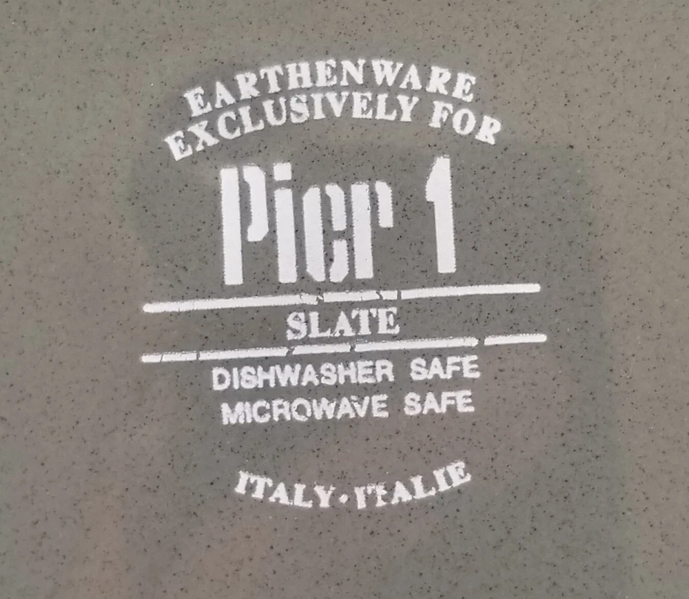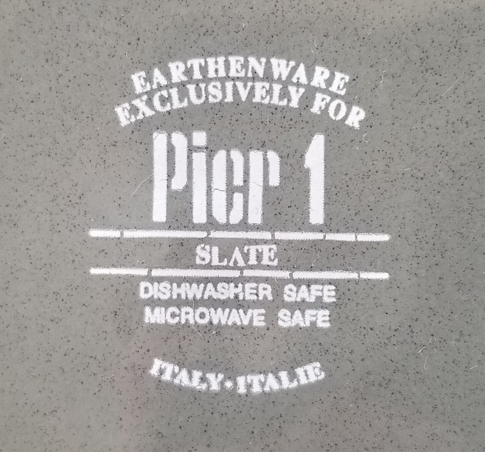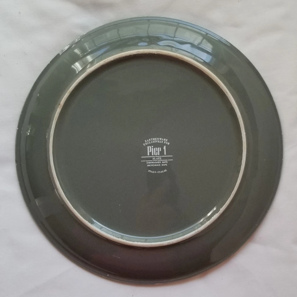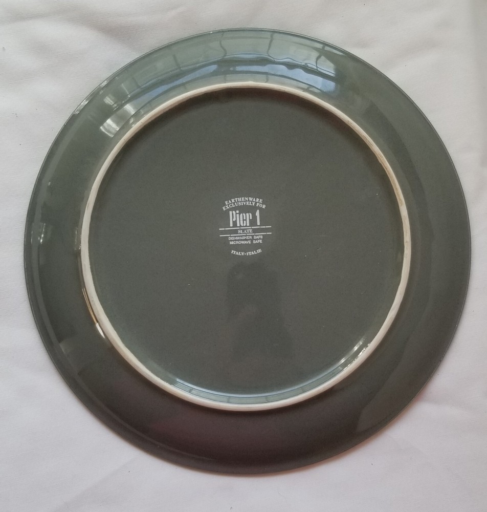 These two Pier 1 Slate dinner plates are in excellent condition with no defects (see photos). These plates have the appearance of never having been used. The Slate pattern features a deep slate green surface with an unglazed cream-colored rim. These plates were manufactured in Italy for Pier 1, and I do not know the current status of this pattern. These dinner plates are 10 3/8 inches in diameter, and the total weight of these two plates is approximately three pounds. The shipping weight will be five pounds. Please see my other listings in my eBay store, Lee's Treasures. I always am happy to combine items to save on shipping costs. Thank you for your interest in my listings!