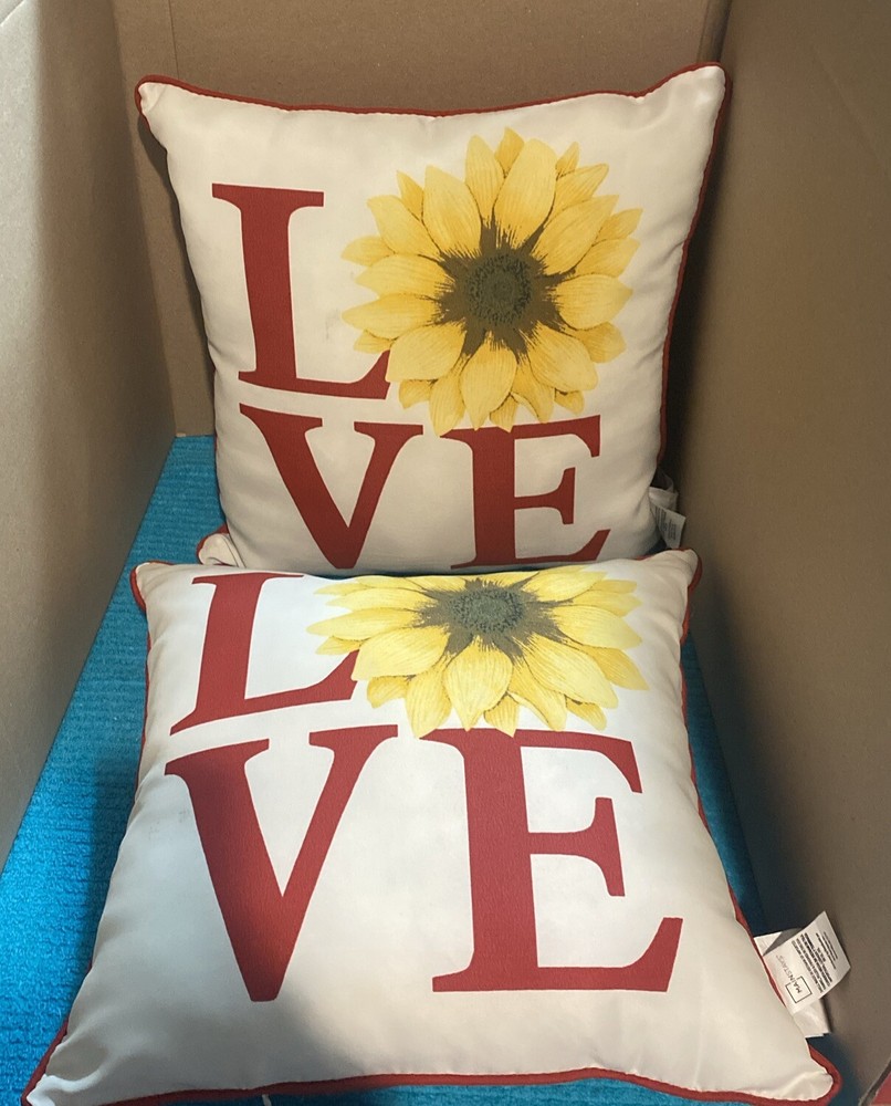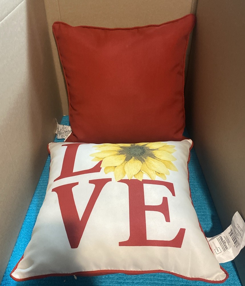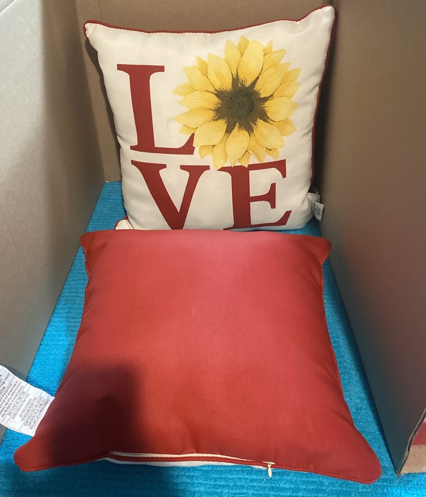 LOVE SUNFLOWER Outdoor Pillow USA 16" Red Back 2 pillows...