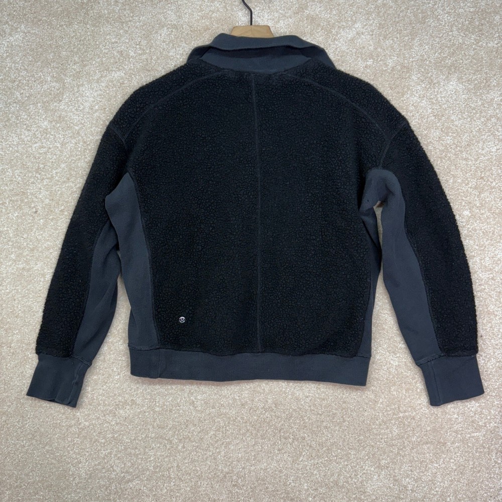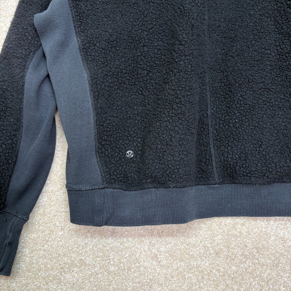 LULULEMON Stand Out Sherpa 1/2 Zip Sweatshirt Black Zipper front pouch pocket Great preowned condition without stains or holes. See pictures for details. Women's size 4 Approximate flat lay measuremen...