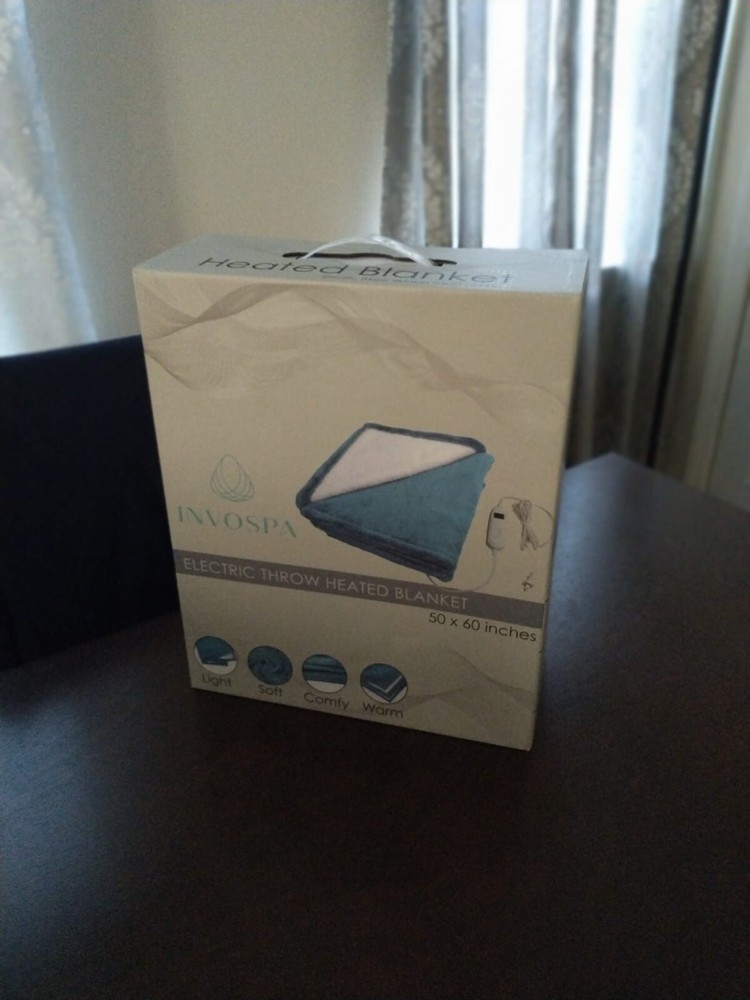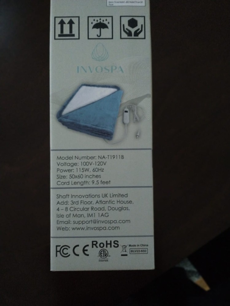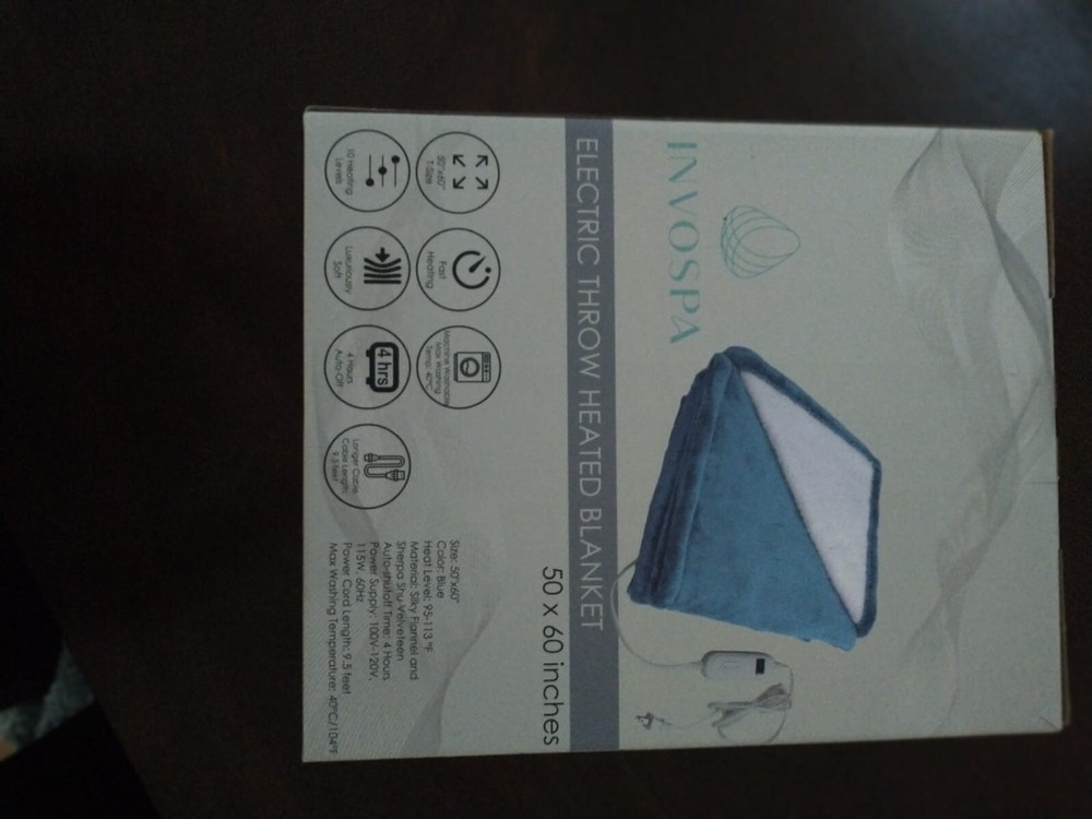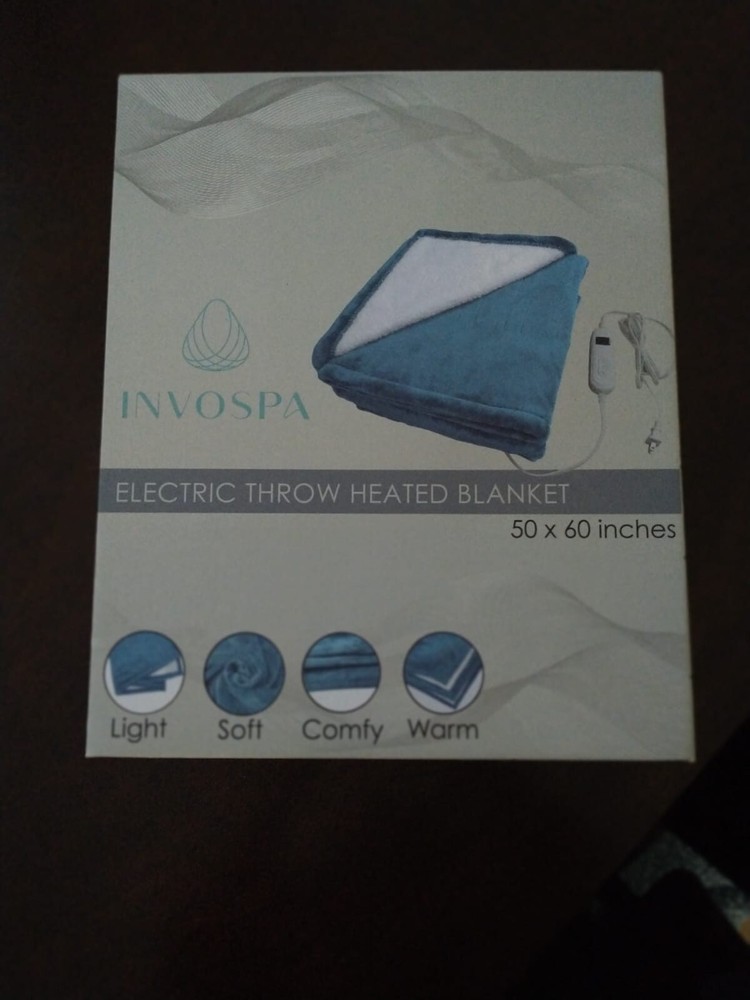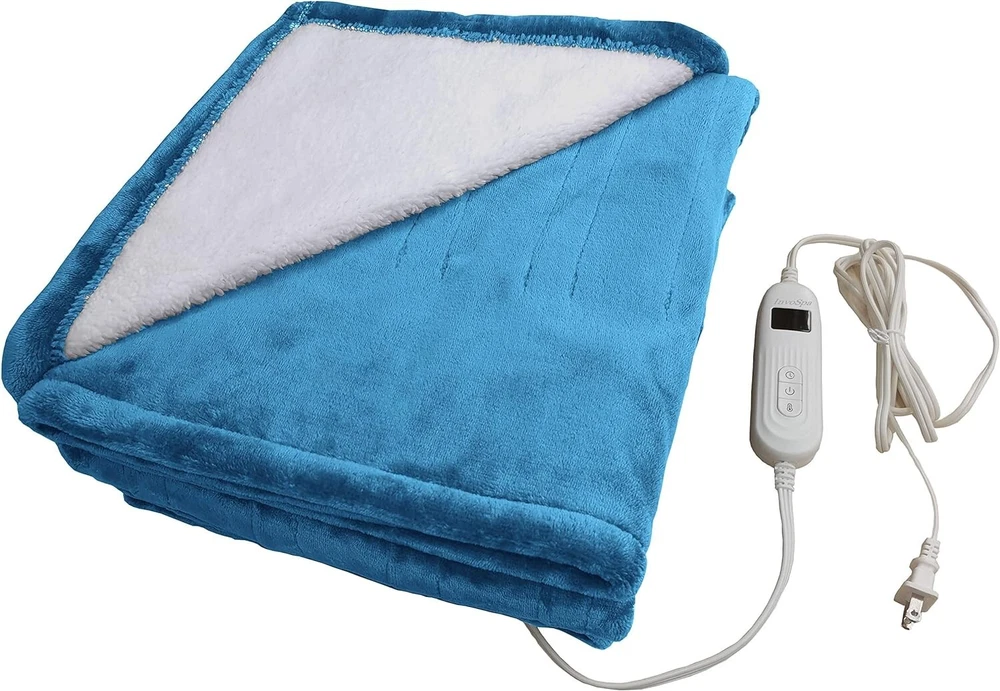 LUXURIOUSLY SOFT AND COZY ELECTRIC THROW HEATED BLANKET - 50" x 60" (BLUE COLOR) Fast heating - Machine Washable - 10 Heat Levels Product Specifications Size: 50"x60" Heat Level: 95-113℉ Material: Silky Flannel and Sherpa Shu Velveteen Auto-shutoff Time: 4 Hours Power Supply: 100V-120V, 115W, 60Hz Power Cord Length: 9.5 feet