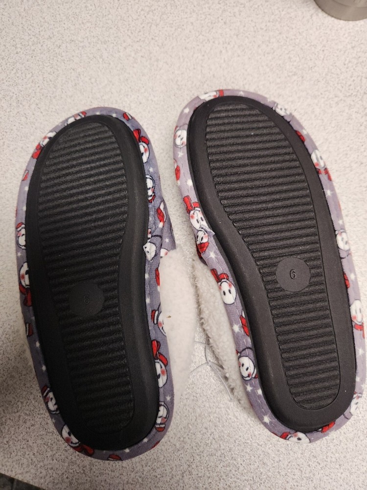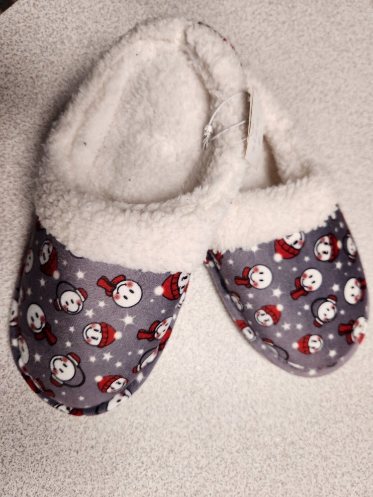 Stay cozy this winter with these brand new slip-on slippers! Made with soft and comfortable sherpa fleece lining, these shoes are perfect for travel or casual wear. The slip-on style makes them easy to put on and take off, with a flat heel height of under 1 inch for added comfort. These slippers are adorned with cute snowmen emojis, adding a touch of whimsy to your wardrobe. The hard bottom provides durability, while the standard shoe width and foam insole make them comfortable for all-day wear. Available in size 6 and a blend of gray, red, and white colors, these slippers are the perfect addition to your winter/fall collection.