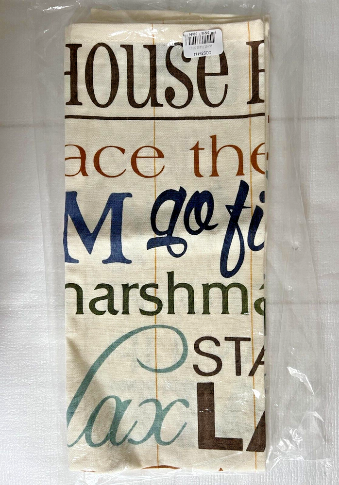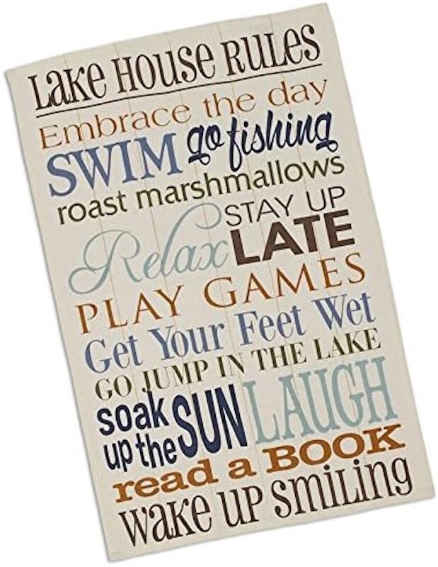Lake House Rules Kitchen Dish Tea Towel 100% Cotton DII Design Imports Approximate size: 28" x 18" Machine Washable New in package Great addition to your Lake House kitchen! Please note the first photo is a stock photo. The remainder show the towel you will receive.