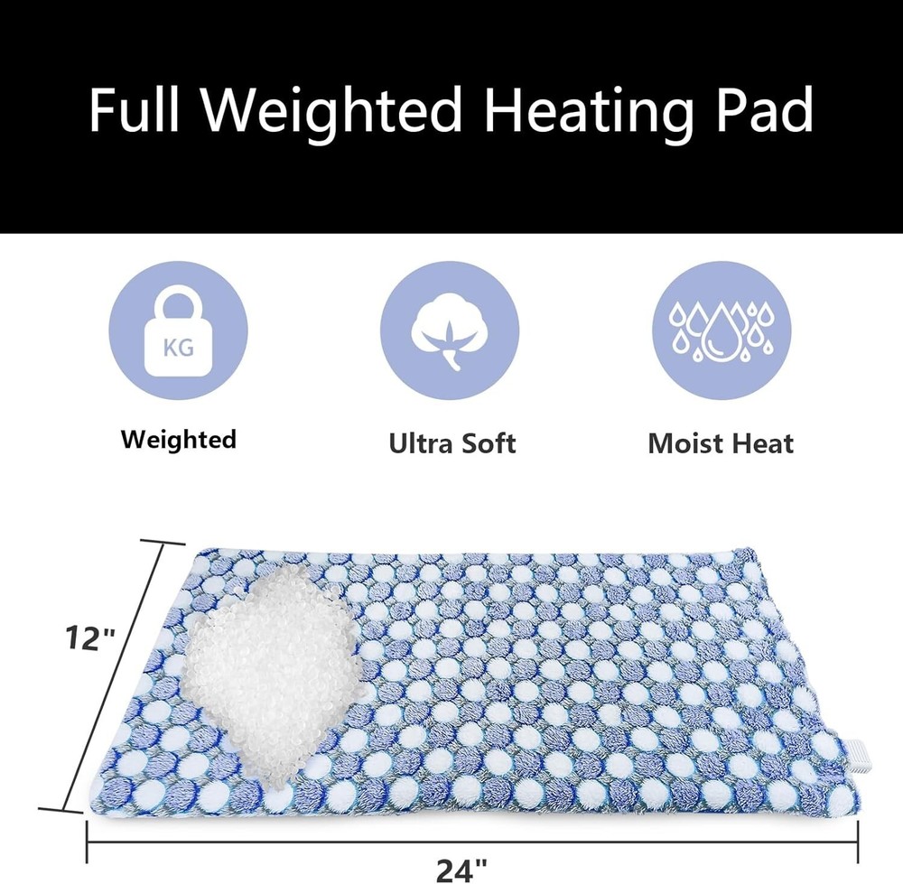 Large 12x24 Weighted Heating Pad with Quick Heat & Timer - Cozy Comfort Gift < class="slides"> ‹ › ‹ › ‹ › ‹ › ‹ › ‹ › ‹ › ‹ › ‹ › Large 12x24 Weighted Heating Pad Quick Heat & Timer - Cozy Comfort Gift Features: <> Super Soft Fabric: Both sides are made from ultra-soft micro plush for ultimate comfort. Perfect for use on your abdomen, back, shoulders, legs, and knees. Quality: Dual-side fluffy fabric that is not only durable but also gentle on the skin. Muscle Relief: Designed to alleviate soreness and tension in various areas, providing soothing comfort. Quick Heating Technology: Efficient heating technology warms up the pad rapidly, delivering instant comfort. Multiple Temperature Settings: With 12 distinct temperature settings, you can effortlessly personalize your warmth preference. Full Weighted Pressure: The 2.4lb ultra-fine glass beads are evenly distributed in a diamond-shaped grid to ensure even heat distribution and stability. Extra-long Cord: An 11ft extension cord offers added mobility, allowing you to comfortably use the pad in various settings. Benefits: <> Experience the soothing comfort of targeted heat therapy. The weighted design keeps the pad in place, ensuring effective relief exactly where you need it. Perfect for chilly winter days—embrace warmth whether at home or in the office. Designed for luxurious comfort while providing therapeutic benefits. Why Choose Our Large Weighted Heating Pad? Elevate your comfort with our Large 12x24 Weighted Heating Pad, meticulously crafted for both effectiveness and comfort. Revel in the warmth of our quality micro plush fabric while targeting sore muscles and areas in need of extra care. With quick heating technology and a staggering 12 temperature settings, you are always in control, ensuring the perfect cozy ambiance. Whether it's a frosty night, a brisk day in the office, or a cozy evening on the sofa, allow yourself to be enveloped in soothing warmth. Make the smart choice for your comfort—order your Large Weighted Heating Pad today and redefine relaxation! Shipping <> <> Free & Fast Shipping - We offer free shipping to most of the USA with a normal delivery time of 3-7 days. However, due to the current situation, additional delivery time (up to 3 weeks) may be required for some items. Alternative Carriers - We may use alternative carriers (e.g. USPS, FedEx, UPS, etc.) to ensure your package arrives safely and on time. Due to the use of multiple carriers, we are unable to provide a tracking number automatically. Handling Time - Orders are processed and shipped within 1-2 business days of receiving cleared payment. Shipping Restrictions - Shipping to Alaska, Hawaii, Puerto Rico, Guam, and other US territories may incur shipping charges or delivery restrictions. Please contact us before ordering, or your order can be refunded/cancelled. State Restrictions - There may be restrictions based on your state of purchase. For example, certain items may not be shipped to California due to state regulations. Contact for Tracking Updates - If you require tracking updates or have any concerns about the delivery of your order, please feel free to contact us, and we will be happy to assist you. Return <> <> 30-Day Hassle-Free Returns - We want you to be completely satisfied with your purchase. If you are not, you can return the item within 30 days of receiving it for a full refund or exchange. Easy Return Process - To start a return, simply contact us and we will provide you with a prepaid return shipping label and detailed instructions. Restocking Fee - There are no restocking fees for returns. However, the buyer is responsible for return shipping costs if the return is not due to a seller's error. Refund Processing Time - Refunds will be processed within 5 business days of receiving the returned item in its condition. Payment We accept all major credit cards, PayPal, and Apple Pay for your convenience. Your payment information is secure and encrypted to ensure a safe and seamless transaction. Please complete your payment within 3 days of purchase to avoid any delays in shipping. Feedback Your feedback is extremely important to us. We strive to provide the best products and customer service possible. If you are satisfied with your purchase, please take a moment to leave us a positive review. If you have any concerns or issues with your order, please contact us before leaving negative feedback. We are committed to resolving any problems and ensuring your satisfaction. Contact Us If you have any questions or concerns, please feel free to out to our customer support team. You can contact us through the eBay messaging system. We are available Monday to Friday, 9:00 am to 5:00 pm EST, and we will do our best to respond to your inquiry within 24 hours. Buy it now and enjoy a pleasant shopping experience! Unit Quantity: 2.3 Power Source: Electric Features: With Temperature Settings,Quick Heating Technology,12 Heating Levels,8 Timer Settings,Machine Washable Material: Polyester,Soft Fabric,Micro Plush Type: Electric Heating Pad Color: Blue Department: Unisex Unit Type: lb