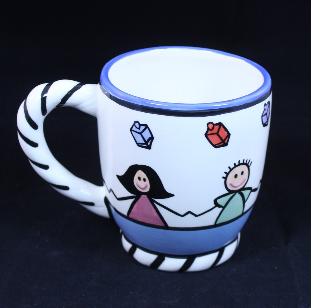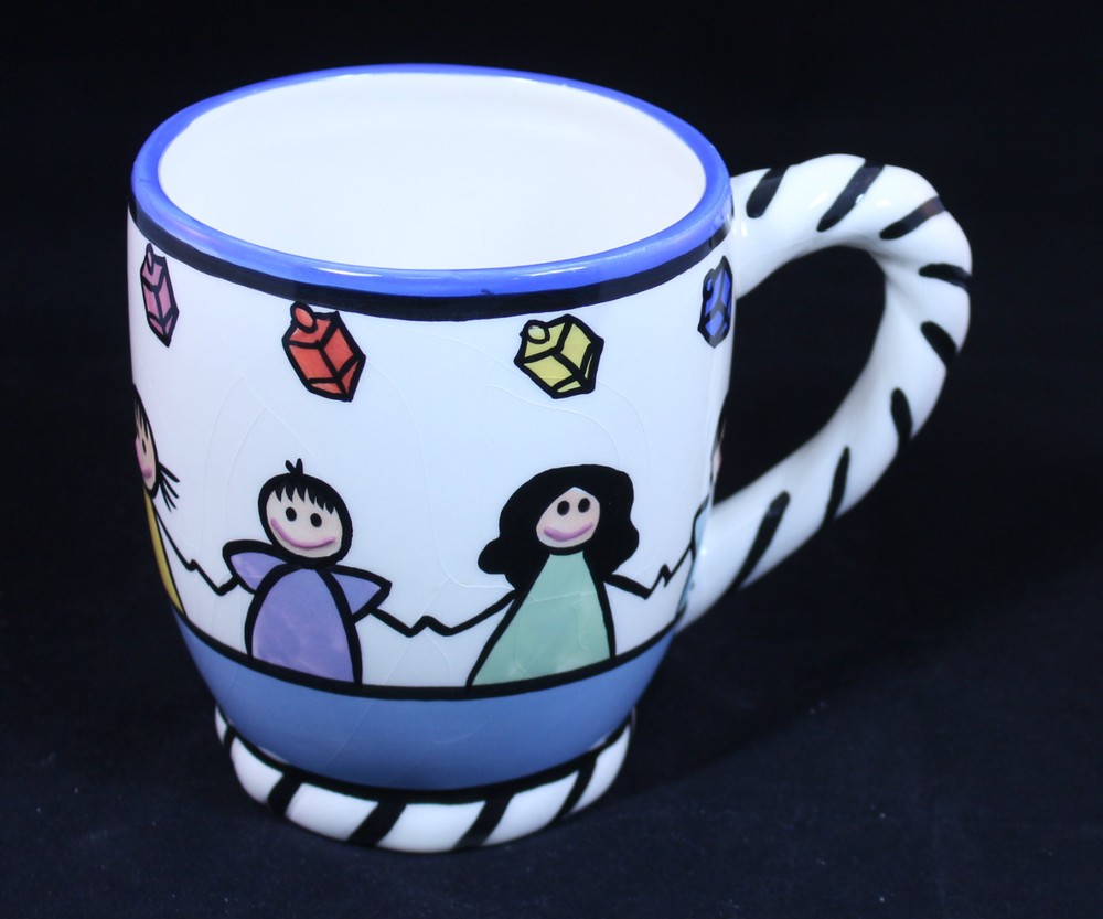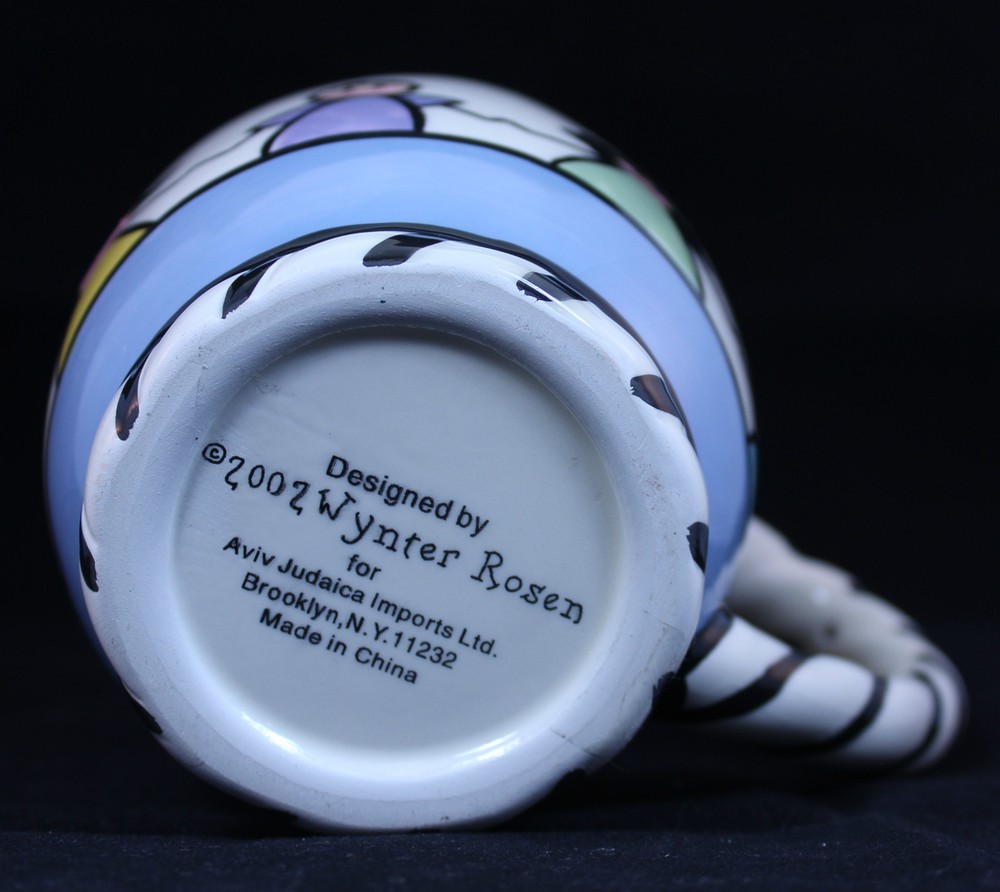 Designed by Wynter Rosen for Aviv Imports Significant crazing 5" tall, 4" diameter at top, 6 1/4" wide at handle...