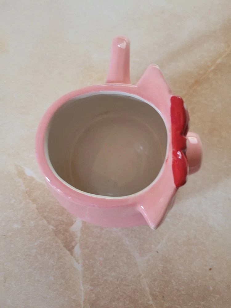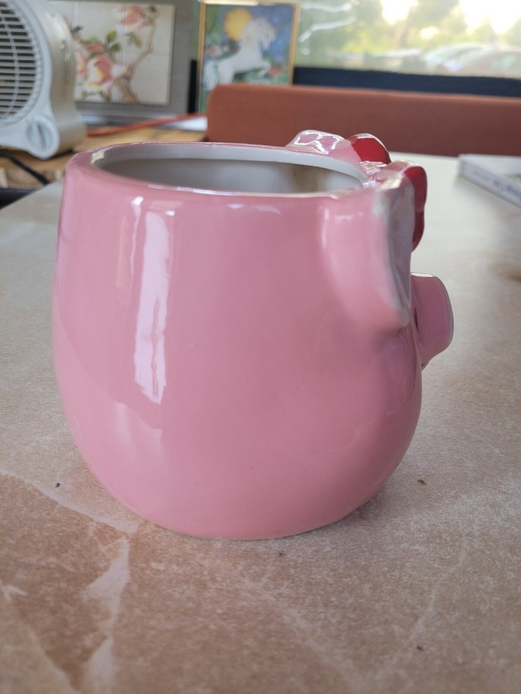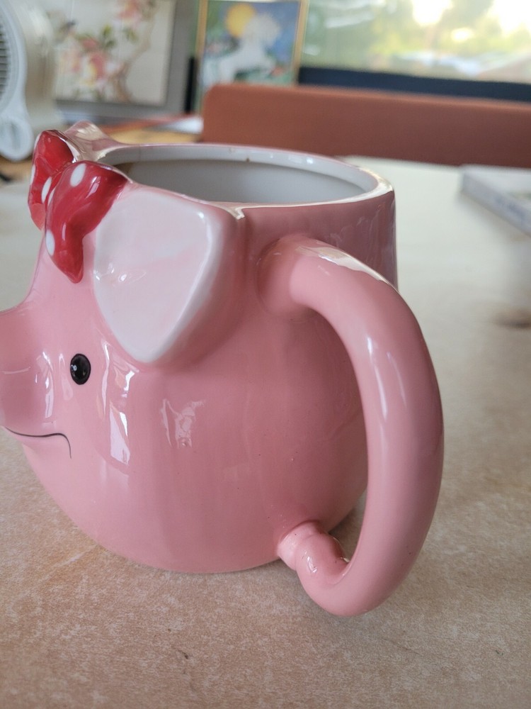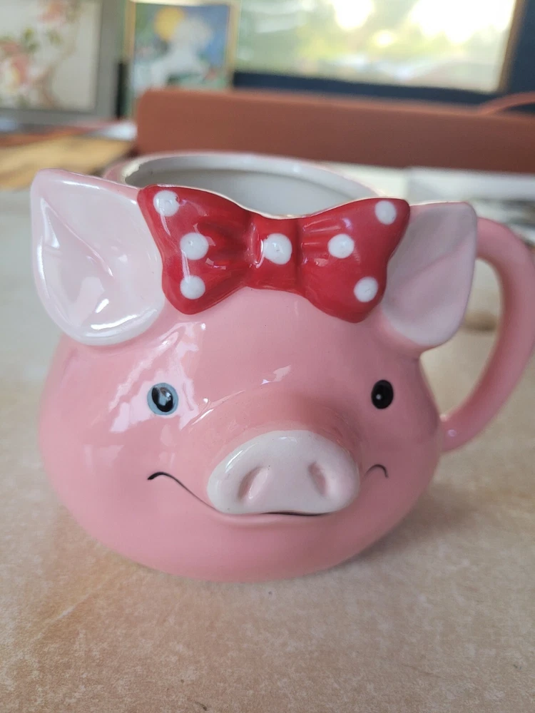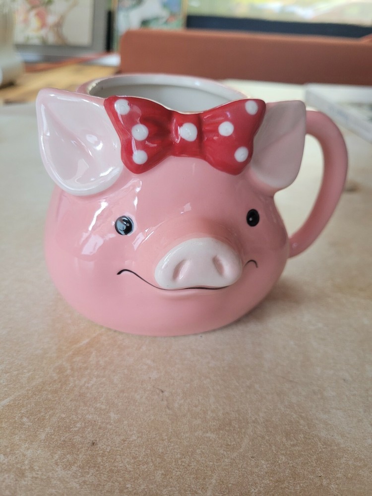 Large Pig coffee tea Mug Red Polka Dot Bow ADORABLE. Stands