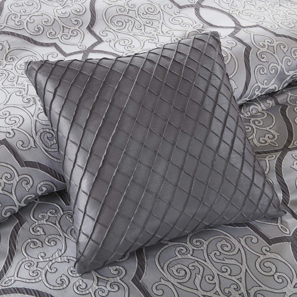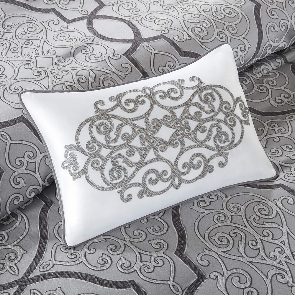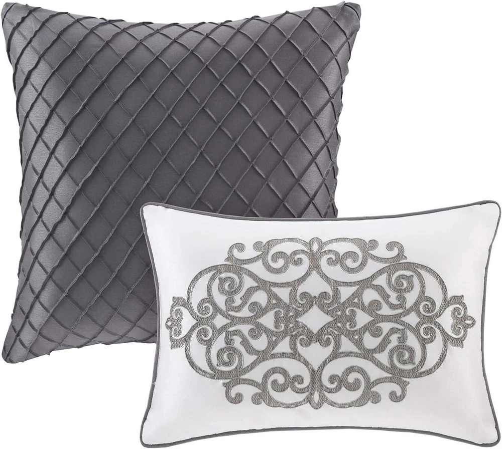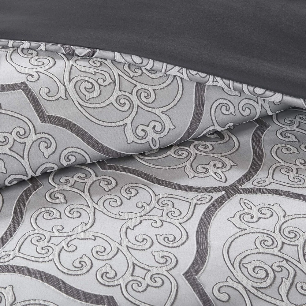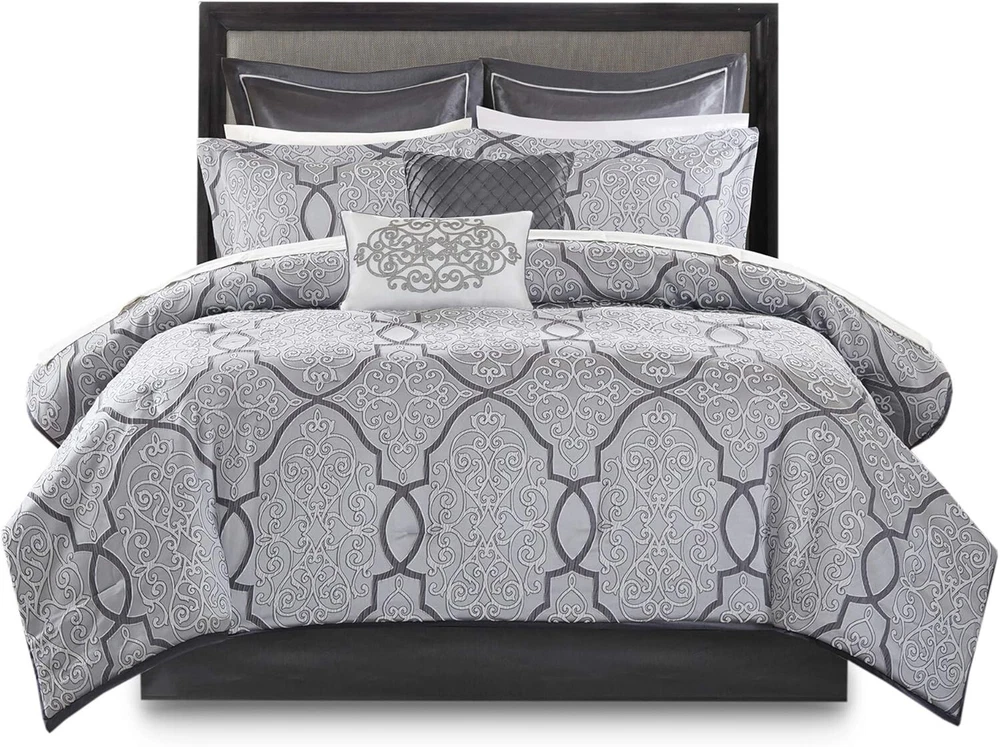 Comforter: 100% Polyester; Sheet Set: 100% Cotton The Lavine Collection provides a rich update to your master bedroom Its jacquard woven fabrication has a three dimensional affect giving this decorative design life A soft 100% cotton sheet set including two standard pillowcases, flat sheet and fitted sheet are also included in this set Set includes: 1 Comforter:90x92" 2 Standard Shams:20x26+2" (2) 1 Bedskirt:60x80+15" 2 Decorative Pillows:18x18"/12x18" 2 Euro Shams:26x26+2" (2) 1 Flat Sheet:90x102" 1 Fitted Sheet:60x80+14" 2 Pillowcases:20x32" (2) Care instructions: Machine wash, delicate and separately Tumble dry low Spot clean decorative pillows