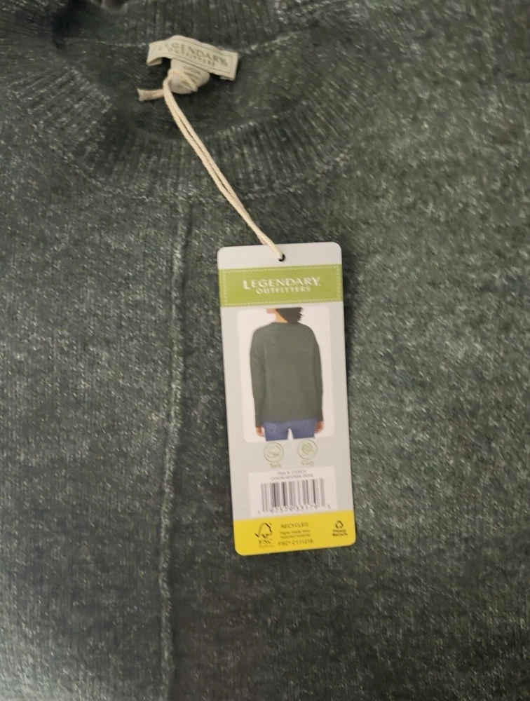 Legendary Outfitters® Colors: green heather olive Soft hand feel Relaxed fit Crewneck pullover Made in China Content: 55% Acrylic | 40% Polyester | 5% Elastane Approximately 260 GSM Midweight Sizing: Sizes: small Size Conversion: XS = 2 | S = 4-6 | M = 8-10 | L = 12-14 | XL = 16 | XXL = 18 | 2X = 20 | 3X = 22 Model is 5'9" wearing size Small Model is 5'8" wearing size X-Large Color & size subject to availability Care Instructions: Machine washable Lay flat to dry