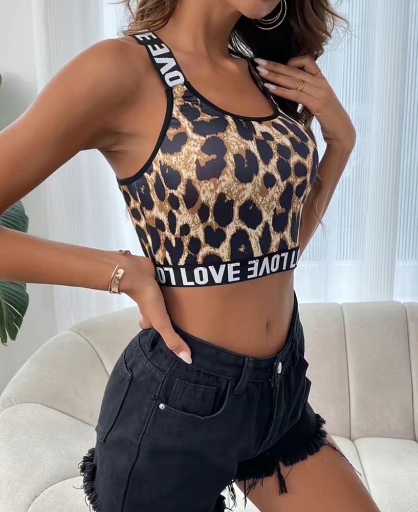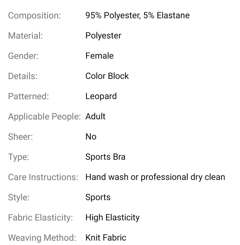 Leopard Cut Out Sports Bra, Comfy & Breathable Criss Cross Back Bra, Women's Brand New Without Tags Size: Large Material: Polyester, Elastane Looking for a comfortable and breathable sports bra? Look no further than this leopard cut-out sports bra! Perfect for any active occasion, this bra features a criss-cross back and pullover closure for added support. The multicolor animal print pattern and cut-out design add a touch of style to your workout. Made from a durable blend of polyester and elastane, this bra is perfect for any woman looking to stay comfortable and stylish during her workout routine.