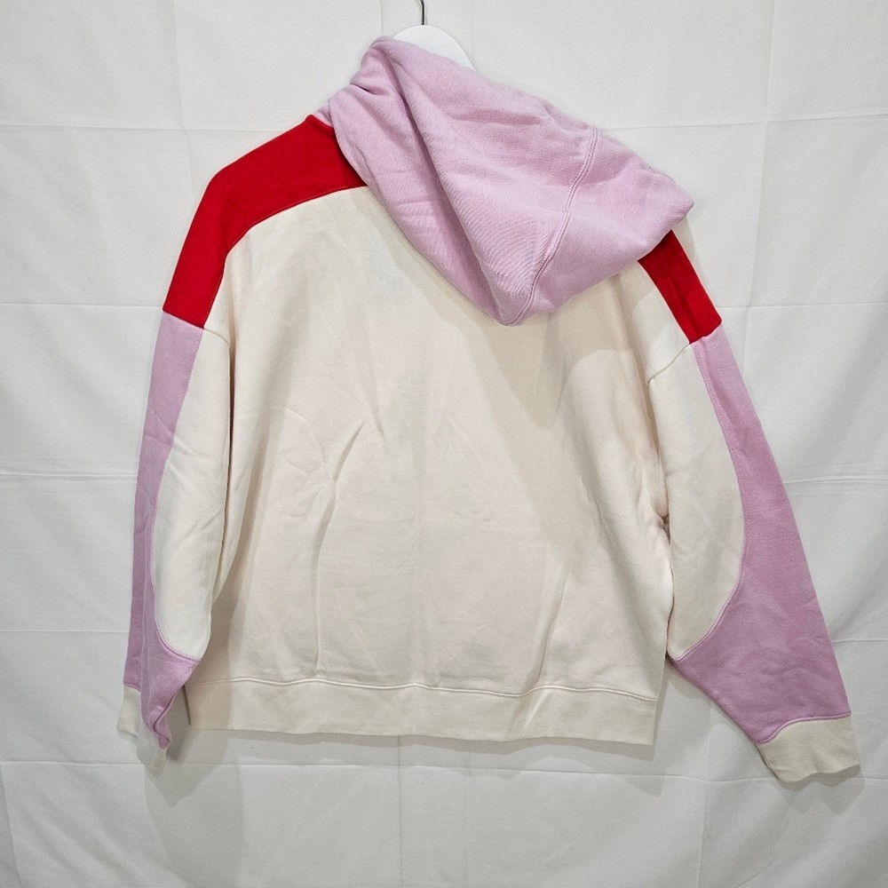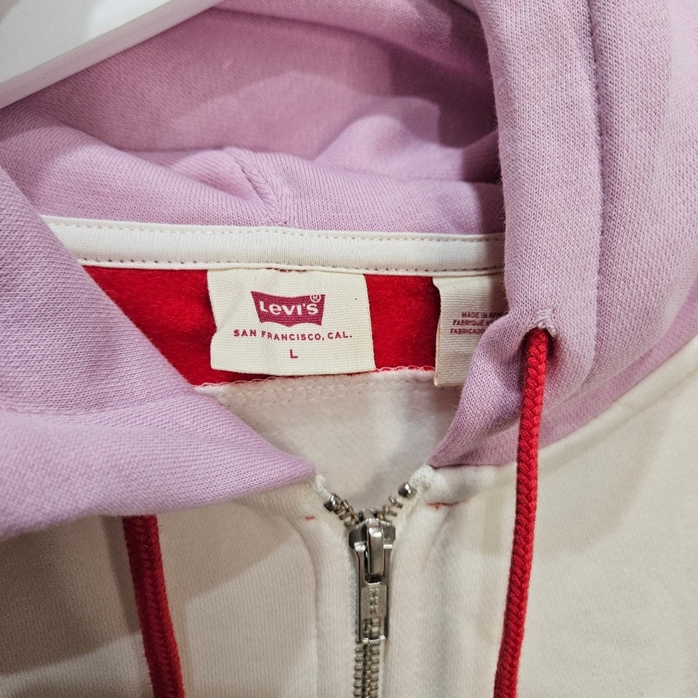 <![CDATA[<div>Levi's Women's Mainstay Hoodie Sweatshirt Full zip Slightly oversized Red, lavender, and cream Size: Large Pit to pit: 24.5 inches Length: 26 inches (measurements are approximate) Material: 80% cotton, 20% polyester Note: Colors may vary due to camera and lighting.