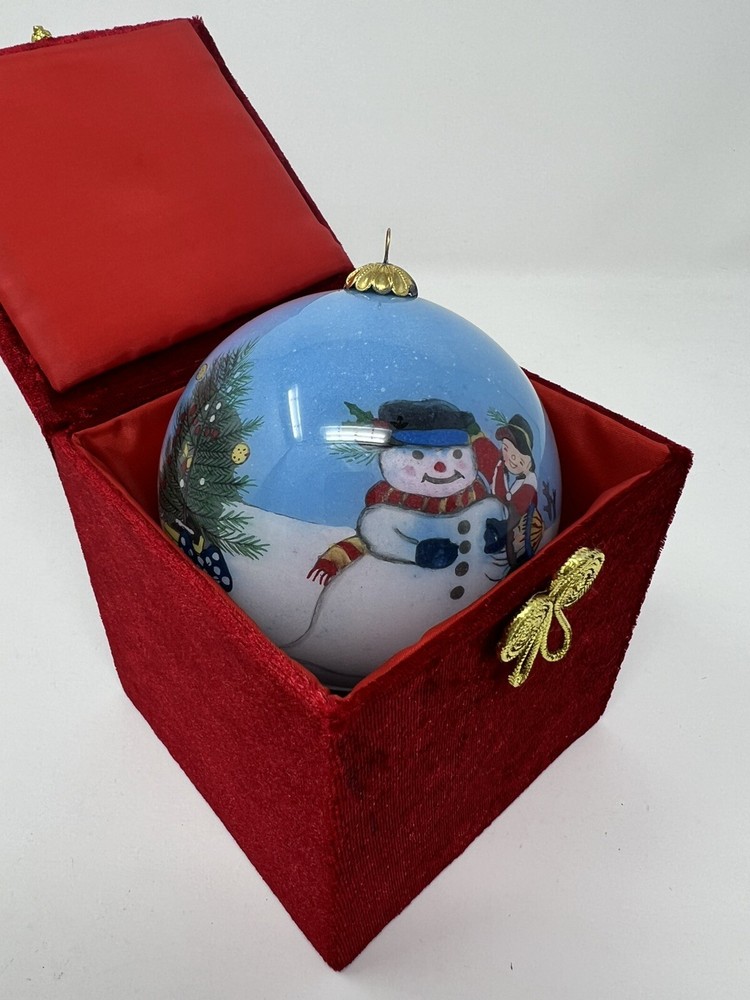 Li Bien Christmas Glass Ornament - Pier 1 Imports - Snowman - Tree - Sled - 1999. Condition is Used. Shipped with USPS Ground Advantage....