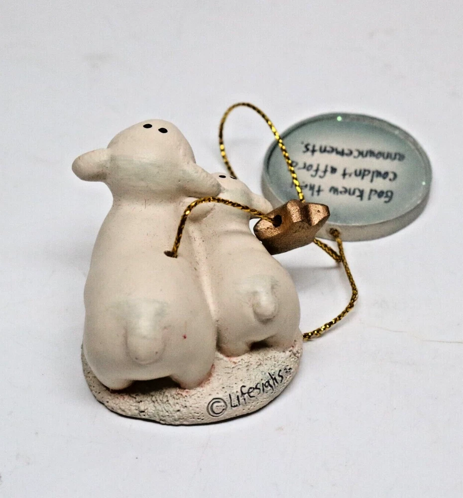 Lifesighs Christmas Ornament by Chris Shea RAZ Imports Sheep Lamb Star No damage, ready to use. Please review pictures and ask questions as needed. Really cute Nativity style ornament with a message: "God knew they couldn't afford announcements, so He sent them a star." FREE SHIPPING Shipped with USPS Ground Advantage. Thanks for looking and please check my other items!