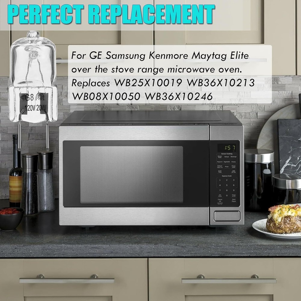 Free eBay listing template designed by dewiso.com Light Bulb for GE Samsung Kenmore Maytag Elite Over The Stove Range Microwave Oven,G8 120V 20W Replacement Night Light/Stove Light/Under Light Halogen Bulb,Replaces WB25X10019 WB36X10213(2 Pack) FREE AND FAST SHIPPING! Replaces:The package including 2 pack microwave light bulb to replace the part # WB25X10019 WB36X10213 WB08X10050 WB36X10246 Specifications:G8 bi-pin base, 120 Volt, 20 Watt, 2800k warm white, 1.38" in length, 0.55" in width.Dimmable and adjusts with high and low switch setting Compatibility:This light bulb fits for GE Samsung Kenmore Maytag Elite over the stove microwave oven surface light Easy Installation:Just unscrew the glass door,then pull out the old bulb and plug in the new one, being careful to line up the pins with the holes Note:We provide 12 months no hassle replacement service,any questions,please contact us at any time.Please wear gloves while replacing the bulb Product We offer a 30-Day Return Policy on items which you are not completely satisfied with. You have the option for a full-refund or an exchange of the item. No returns are available on items shipped outside of the US . Shipping We offer Free Shipping to the US and ship within 2 business days of payment, usually sooner. We use UPS express shipping. That's why your products are usually delivered within 3 days . Contact We try our very best to make sure every customer is completely satisfied. If there's a problem , message us! We're happy to help. 24/7 live chat available.