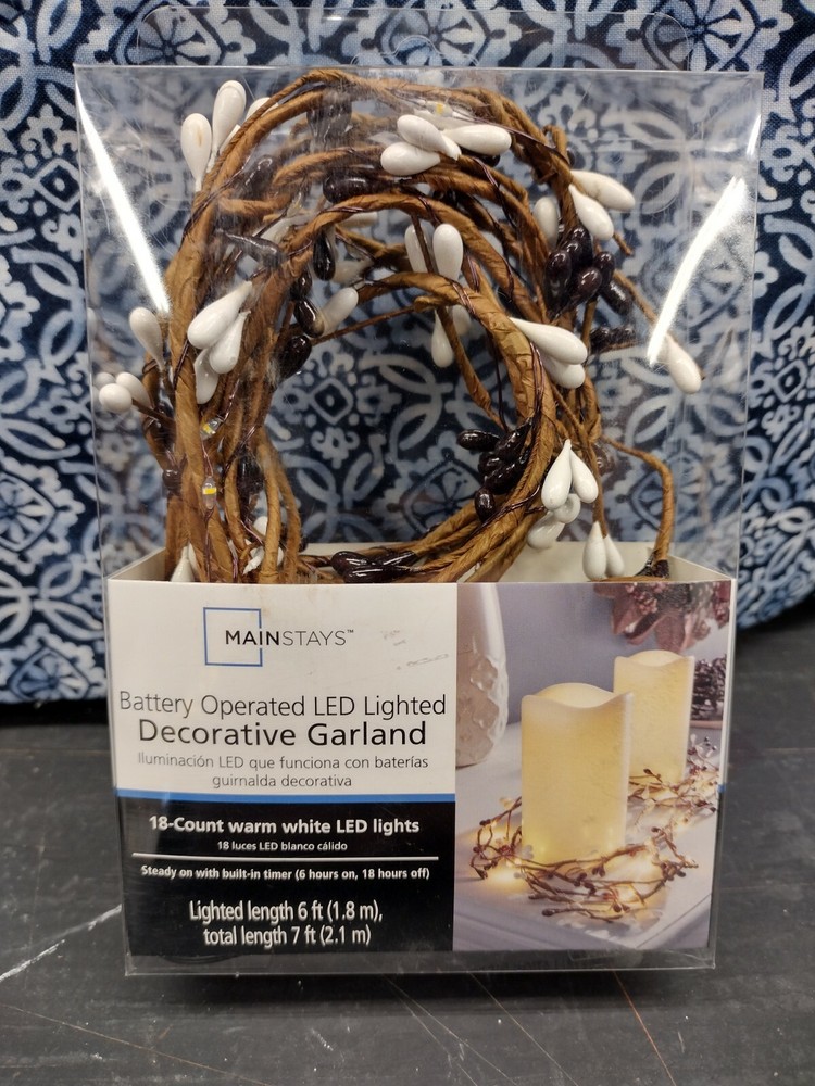 Light Up Decorative Garland Battery Operated Black & White Berries NEW....