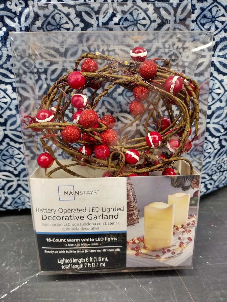 Light Up Decorative Garland Battery Operated Red Berries NEW.
