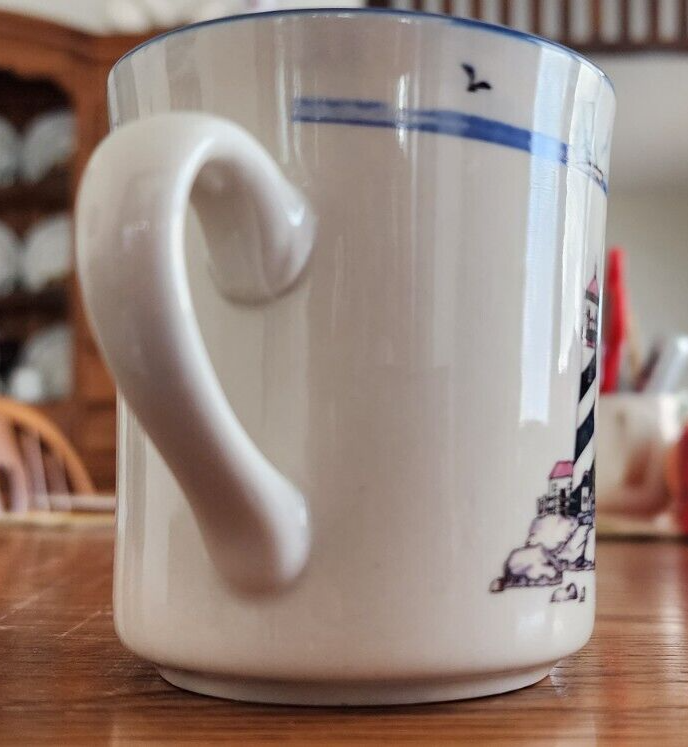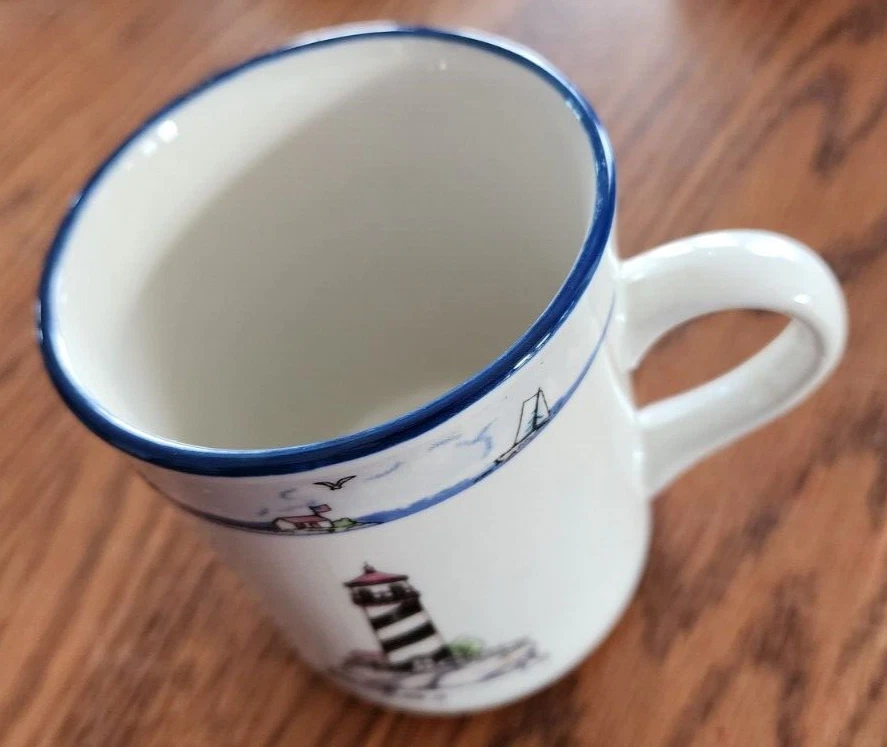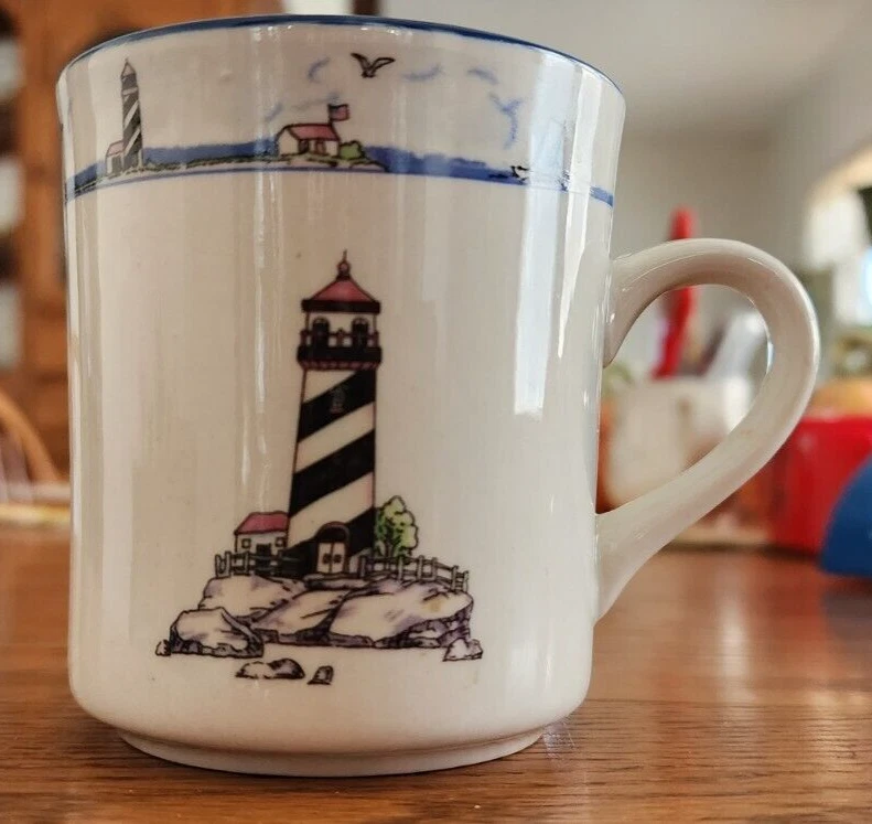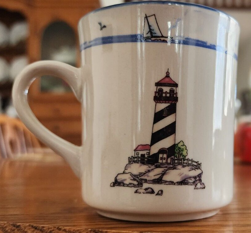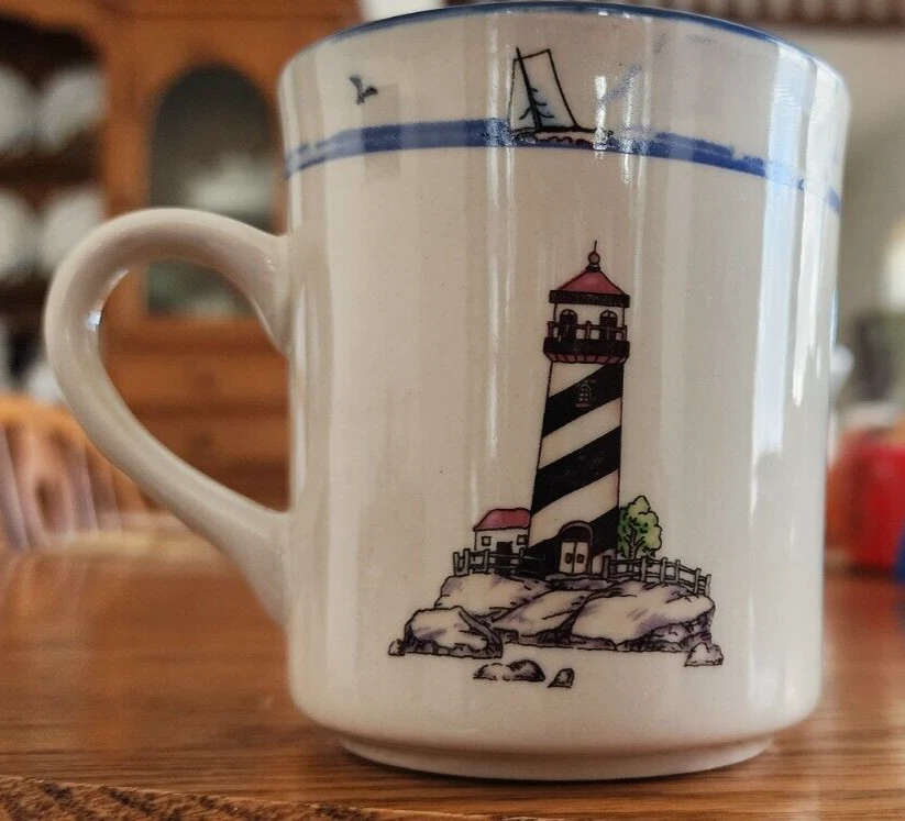 Hi! The details r listed above for these Lighthouse Mugs (pair) 1 0 oz. Coastal Breeze By the Sea Main Stays Home Stoneware White Blue Black Red ! Again, these r in excellent condition ( no chips, cracks, utensil marks, or crazing!) ! I may have more of these! Please ask! Also , I have several other pieces in this pattern! Please ask! I combine shipping too ! A s u may know, combined shipping , is after the base pound, each pound that increases, the price per pound decreases! Also, as u may know , in any of my listings, on the right, about 1/2 way down, under "Seller information," u'll see a link "Visit Store." Press that, put the pattern name or keyword on the upper left. Do a search, & u'll see my other pieces in this pattern. I use bubble wrap (often doubled, sometimes tripled), I use packing peanuts (on all four sides, top & bottom), & use corrugated cardboard boxes! U may want to look at my other my listings! Additional pieces could be sold at a discounted price! I find it handy to have extras, not, only, in case of breakage (God forbid), but in a pattern which may be hard to find (& at these prices!)! Also , I use plates as liners under my fruit pedestal bowl as well as my coffee cup tree! The border shows & coordinates with any pieces which may be out! Please keep in mind , when ur comparing prices, I may have other pieces in this pattern (most times, several). Again, I combine shipping! Also , please let me know if u may be looking for anything in particular! Any questions, please ask (Don't be shy!)! Thx! P.S.: Also, I give a 10% shipping discount! P.P.S.: Though my listing states up to three (3) days to ship, I, often, ship the same day! If u'd like same day shipping, please let me know. I'll do my best! Yet another post script: Please WAIT to pay! The shipping calculator, I’m told be ebay, is an estimate when buying multiple pieces. Please buy it now. There should be a button to “request total” on the upper right. Then, I’ll make sure the invoice is accurate. 😊 4 total