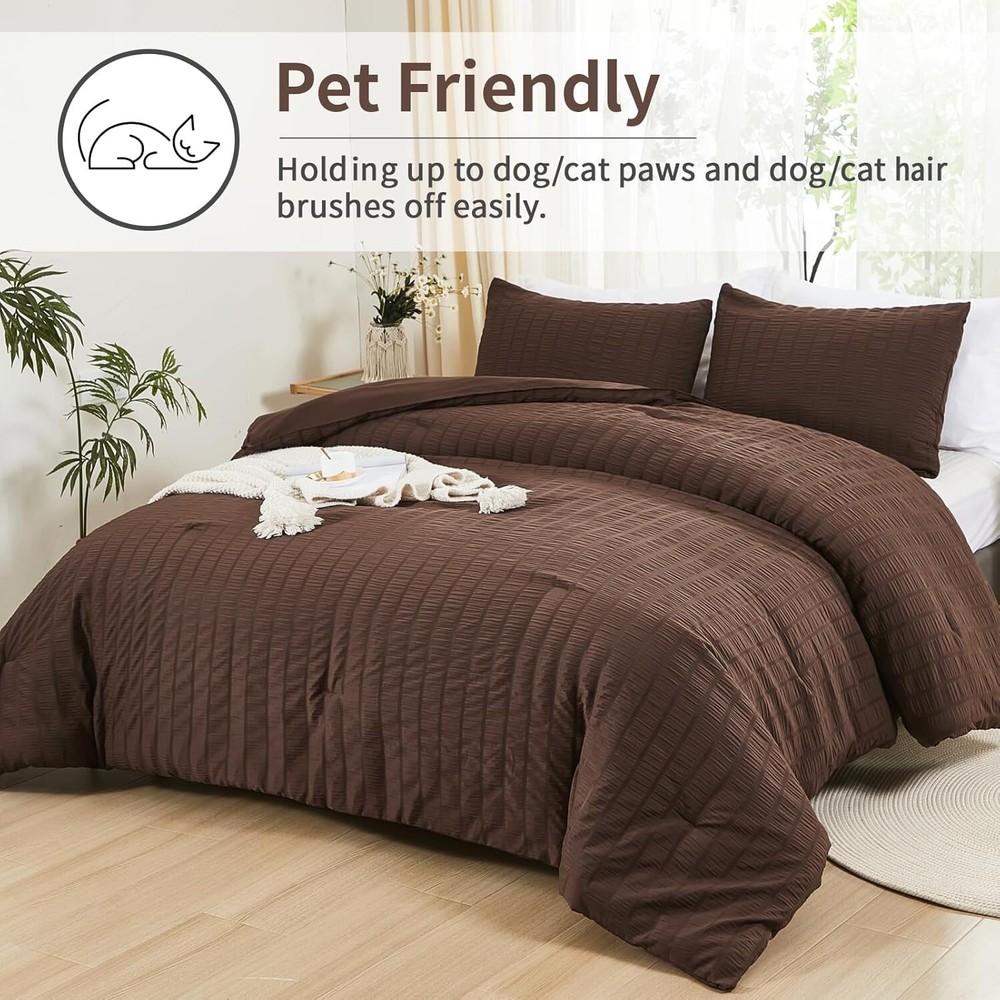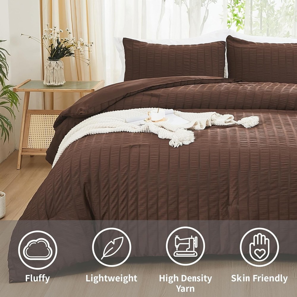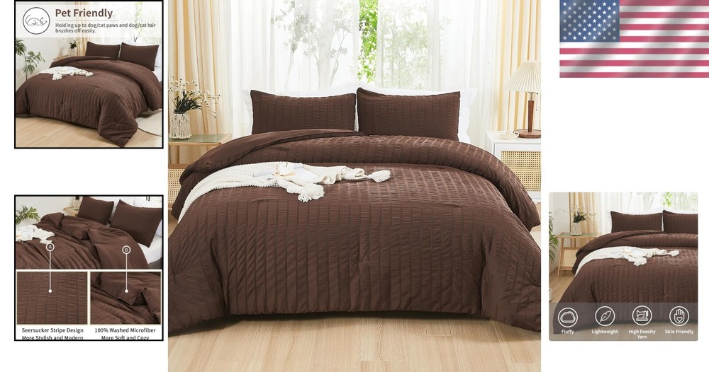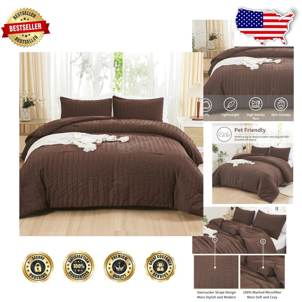 Lightweight 3-Piece California King Brown Seersucker Comforter Set – Cozy & Soft ‹ › ‹ › ‹ › ‹ › ‹ › ‹ › ‹ › ‹ › ‹ › Lightweight 3-Piece California King Brown Seersucker Comforter Set Cozy & Soft Chic Seersucker Design: Transform your bedroom into a haven of style with our delicately crafted seersucker comforter set. The unique texture sets it apart from ordinary bedding, adding a touch of elegance that will make you fall in love at first sight. Comfortable and Soft: Made of 100% washed microfiber for an incredibly soft feel. 300 GSM filling ensures warmth and coziness throughout all seasons. 40% more durable and breathable than standard materials, providing lasting comfort. Lightweight and Fluffy: Experience the sensation of sleeping on a cloud with this lightweight comforter that doesn't compromise on warmth. The well-finished fabric offers a smooth and inviting touch, promising restful nights. Easy Care and Pet Friendly: Machine washable in a gentle cycle with cold water for convenience. Air dry or tumble dry on low heat; no bleach necessary. Designed to resist pet hair, making maintenance effortless for pet lovers. Size & Measurement: Includes 1 comforter (104x96 inches) and 2 pillowcases (20x36 inches). Versatile enough to be used as a duvet insert or a stand-alone comforter. DREAMY SEERSUCKER, EMBELLISH YOUR SWEET DREAMS Still searching for the perfect gift or a stylish comforter set for your home? Look no further. Our luxury seersucker comforter set combines a contemporary design with high-quality craftsmanship, ensuring you sleep soundly and stylishly. Let our comforter set elevate your bedroom decor and inspire sweet dreams every night. Choose elegance. Choose comfort. Choose the Seersucker Comforter Set today! Shipping Free & Fast Shipping - We offer free shipping to most of the USA with a normal delivery time of 3-7 days. However, due to the current situation, additional delivery time (up to 3 weeks) may be required for some items. Alternative Carriers - We may use alternative carriers (e.g. USPS, FedEx, UPS, etc.) to ensure your package arrives safely and on time. Due to the use of multiple carriers, we are unable to provide a tracking number automatically. Handling Time - Orders are processed and shipped within 1-2 business days of receiving cleared payment. Shipping Restrictions - Shipping to Alaska, Hawaii, Puerto Rico, Guam, and other US territories may incur shipping charges or delivery restrictions. Please contact us before ordering, or your order can be refunded/cancelled. State Restrictions - There may be restrictions based on your state of purchase. For example, certain items may not be shipped to California due to state regulations. Contact for Tracking Updates - If you require tracking updates or have any concerns about the delivery of your order, please feel free to contact us, and we will be happy to assist you. Return 30-Day Hassle-Free Returns - We want you to be completely satisfied with your purchase. If you are not, you can return the item within 30 days of receiving it for a full refund or exchange. Easy Return Process - To start a return, simply contact us and we will provide you with a prepaid return shipping label and detailed instructions. Restocking Fee - There are no restocking fees for returns. However, the buyer is responsible for return shipping costs if the return is not due to a seller's error. Refund Processing Time - Refunds will be processed within 5 business days of receiving the returned item in its condition. Payment We accept all major credit cards, PayPal, and Apple Pay for your convenience. Your payment information is secure and encrypted to ensure a safe and seamless transaction. Please complete your payment within 3 days of purchase to avoid any delays in shipping. Feedback Your feedback is extremely important to us. We strive to provide the best products and customer service possible. If you are satisfied with your purchase, please take a moment to leave us a positive review. If you have any concerns or issues with your order, please contact us before leaving negative feedback. We are committed to resolving any problems and ensuring your satisfaction. Contact Us If you have any questions or concerns, please feel free to out to our customer support team. You can contact us through the eBay messaging system. We are available Monday to Friday, 9:00 am to 5:00 pm EST, and we will do our best to respond to your inquiry within 24 hours. Buy it now and enjoy a pleasant shopping experience! Set Includes: Comforter,Pillowcase Material: Microfiber Features: Breathable,Lightweight,Durable,Soft Theme: Seersucker Care Instructions: Do Not Bleach,Machine Wash Department: Adults Room: Bedroom Size: California King Type: Comforter Set Color: Brown Fill Material: Microfiber Pattern: Solid Insulation: All Seasons Number of Items in Set: 3 Style: Chic Season: All Closure Type: No Closure Thread Count: 200 or Less GSM (Grams per Square Meter): 301 to 450
