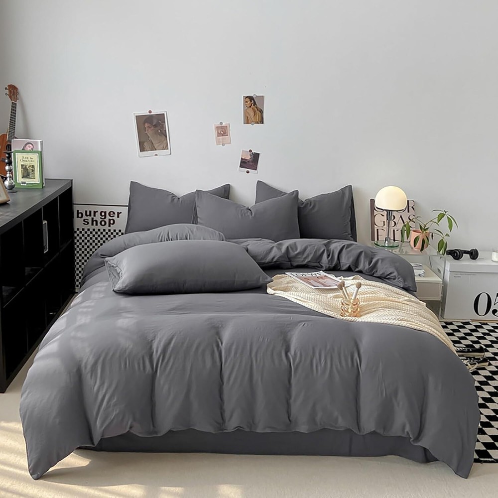 This comforter set is a game-changer! The dark grey shade adds a sleek, modern touch to my bedroom, and the lightweight fabric keeps me cozy without overheating. The 3-piece set fits my full bed perfectly, and the soft, high-quality material feels amazing against my skin. Easy to care for and super stylish—definitely worth it!